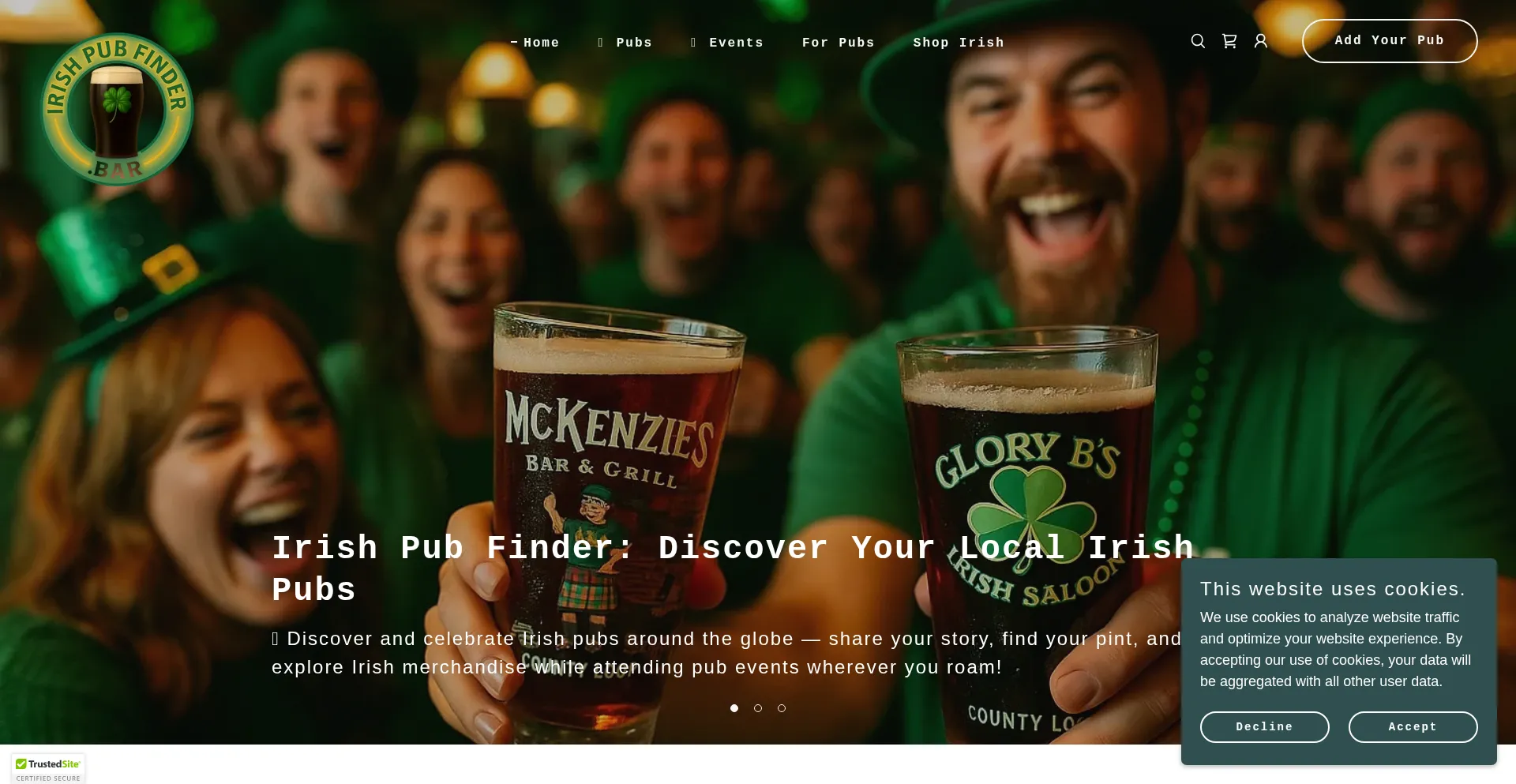 Find your local Irish pubs, explore pub events, and shop for Irish merchandise with Irish Pub Finder — your guide to all things Irish pub!