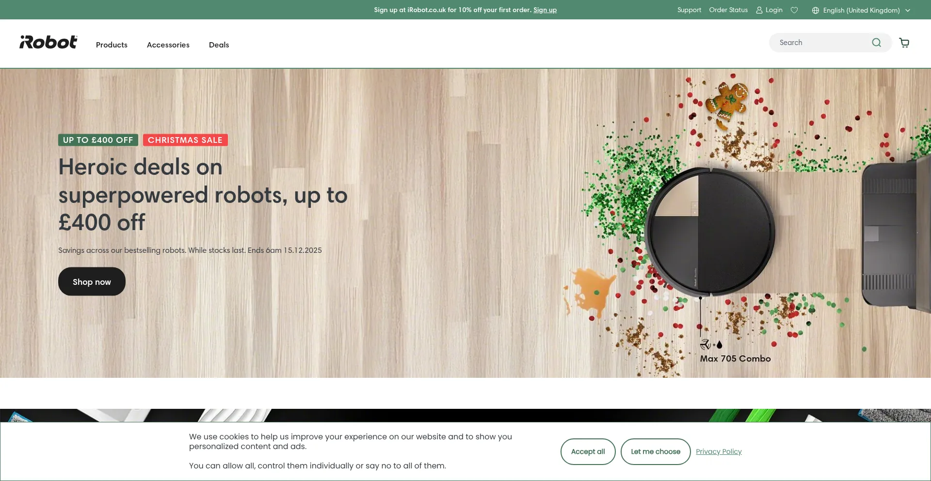 The website implements cookie consent mechanisms in compliance with privacy regulations such as GDPR or CCPA. This demonstrates that irobot.co.uk adheres to data protection standards and provides users with control over personal data collection practices.