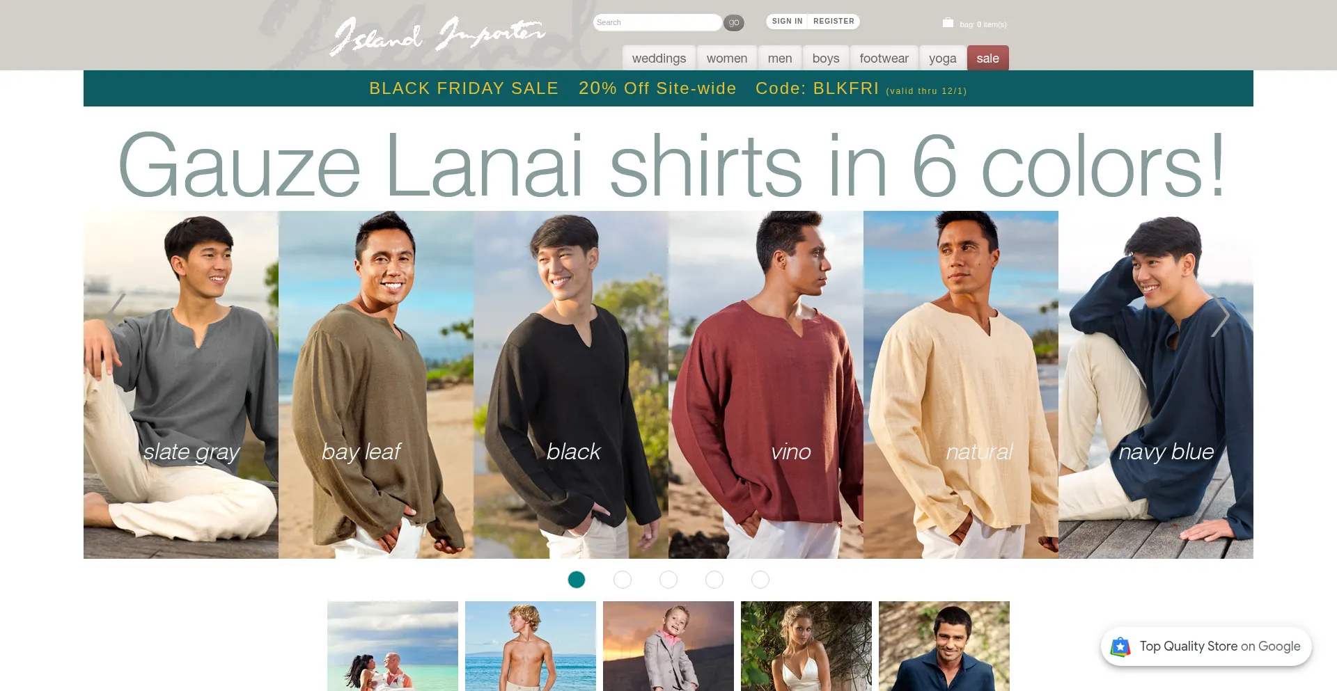 Island Importer provides beach wedding attire for men, women, & boys in 100% pure linen, certified organic cotton, & more.