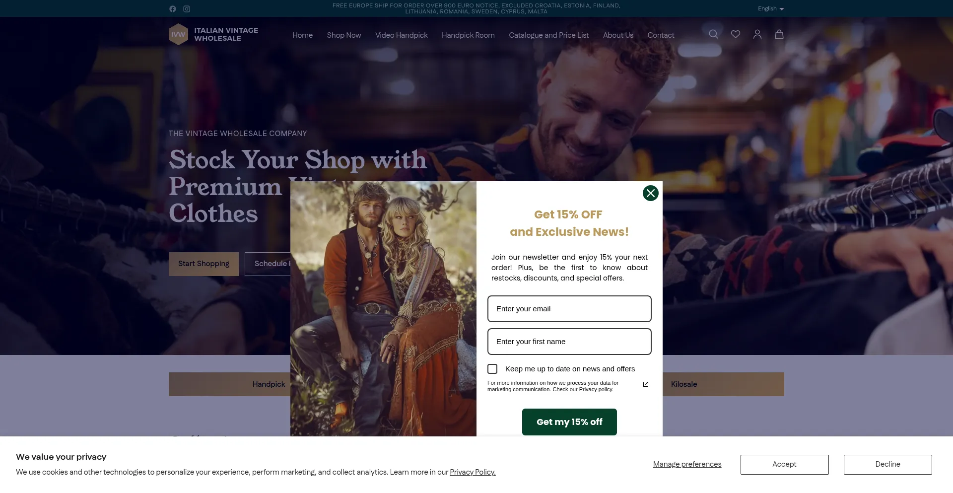 The website implements cookie consent mechanisms in compliance with privacy regulations such as GDPR or CCPA. This demonstrates that italianvintagewholesale.com adheres to data protection standards and provides users with control over personal data collection practices.