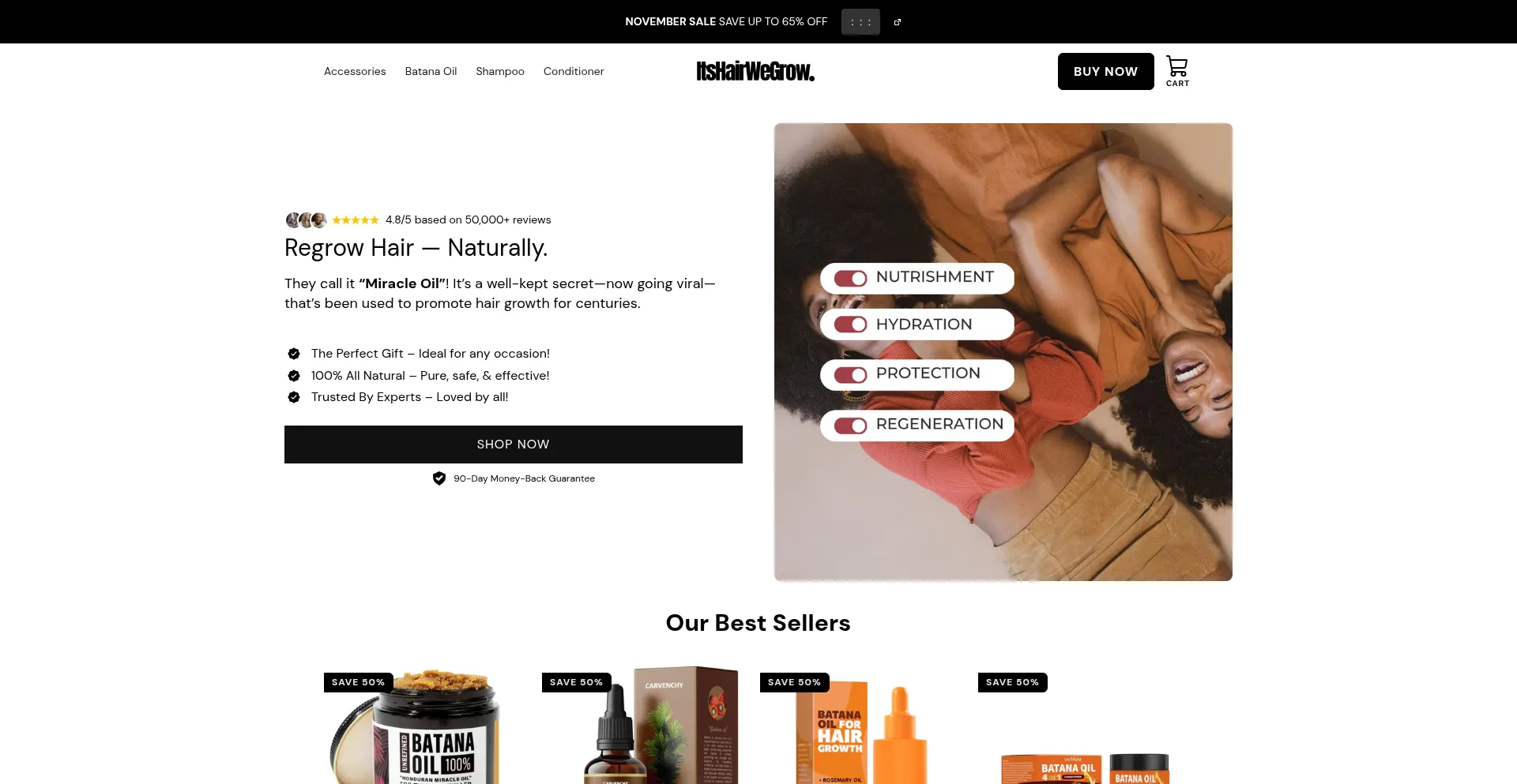 Analysis indicates that itshairwegrow.com operates as an e-commerce platform facilitating online transactions for goods or services. The website implements shopping cart functionality, payment processing systems, and product catalog features typical of commercial retail operations.