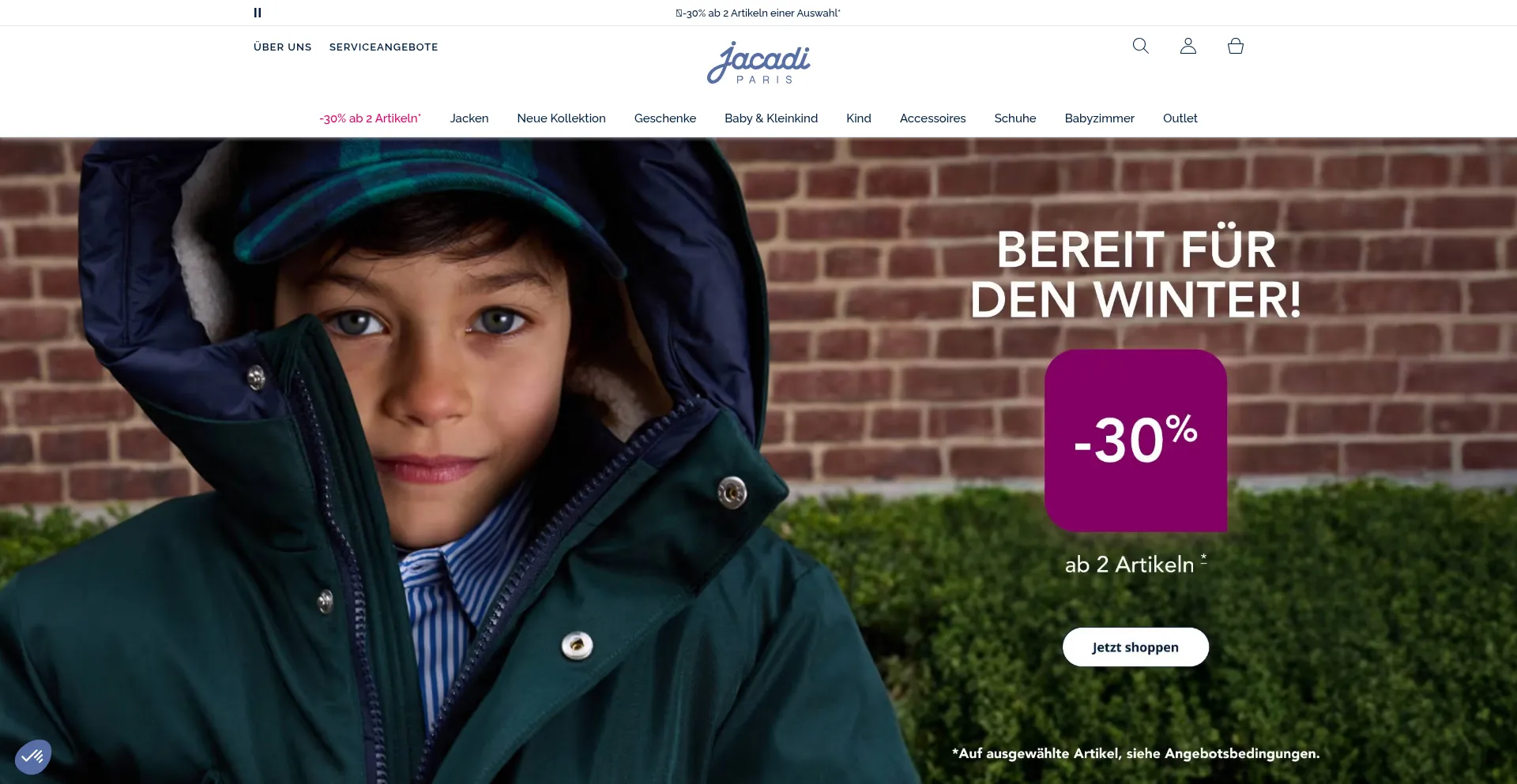 Bei Jacadi finden Sie die neuesten Kollektionen an modischen Kleidern und Schuhen sowie Accessoires für Babys und Kinder im Alter von 0-12 Jahren.