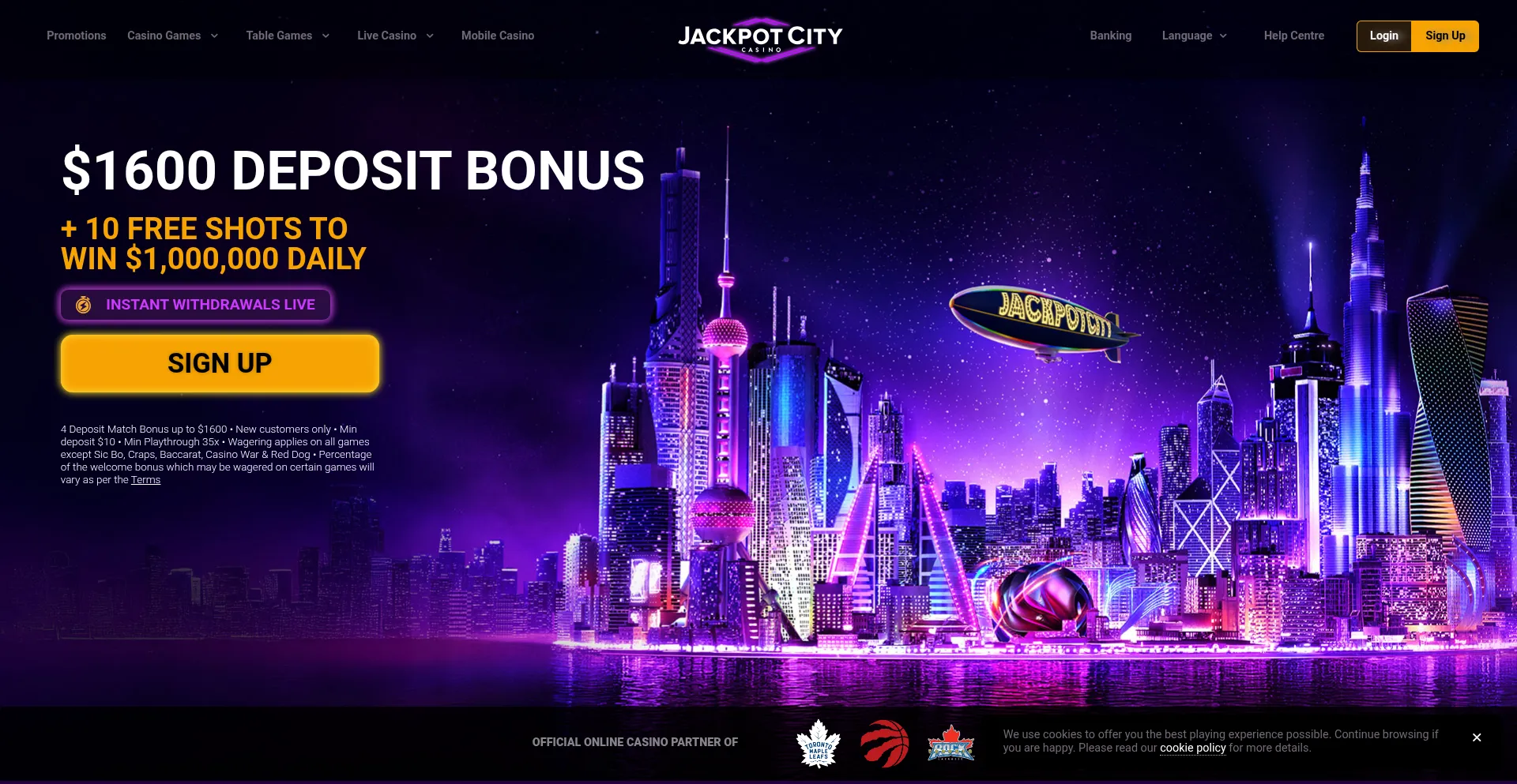 The website implements cookie consent mechanisms in compliance with privacy regulations such as GDPR or CCPA. This demonstrates that jackpotcity.ca adheres to data protection standards and provides users with control over personal data collection practices.