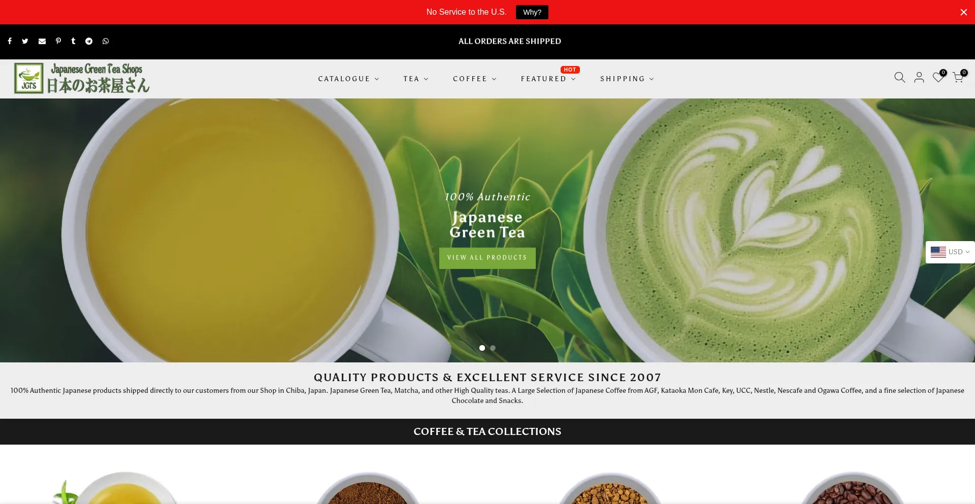 Our analyzer determines that website japanesegreenteashops.com is using Shopify CMS. Shopify is a popular e-commerce platform, powering around 4.4% of websites globally.