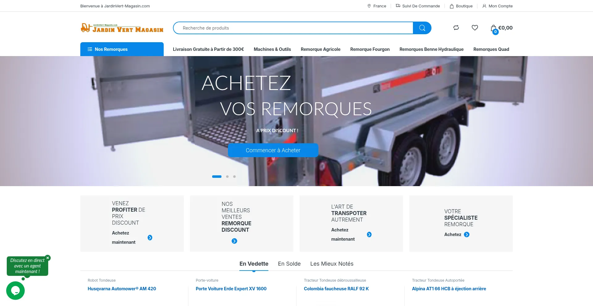 Jardin Vert Magasin - Votre magasin de remorque avec la garantie du meilleur prix !
