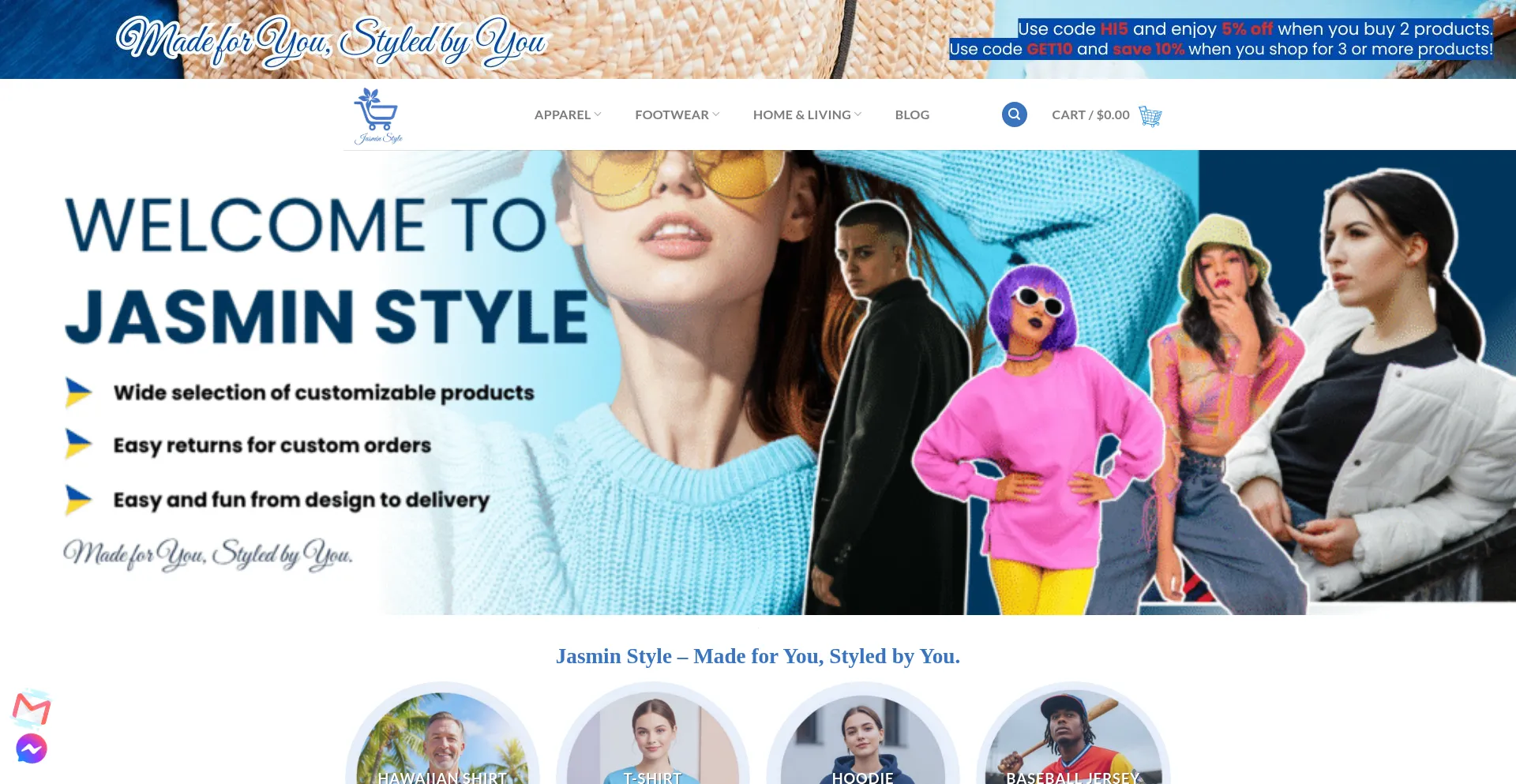 Analysis indicates that jasminstyle.com operates as an e-commerce platform facilitating online transactions for goods or services. The website implements shopping cart functionality, payment processing systems, and product catalog features typical of commercial retail operations.