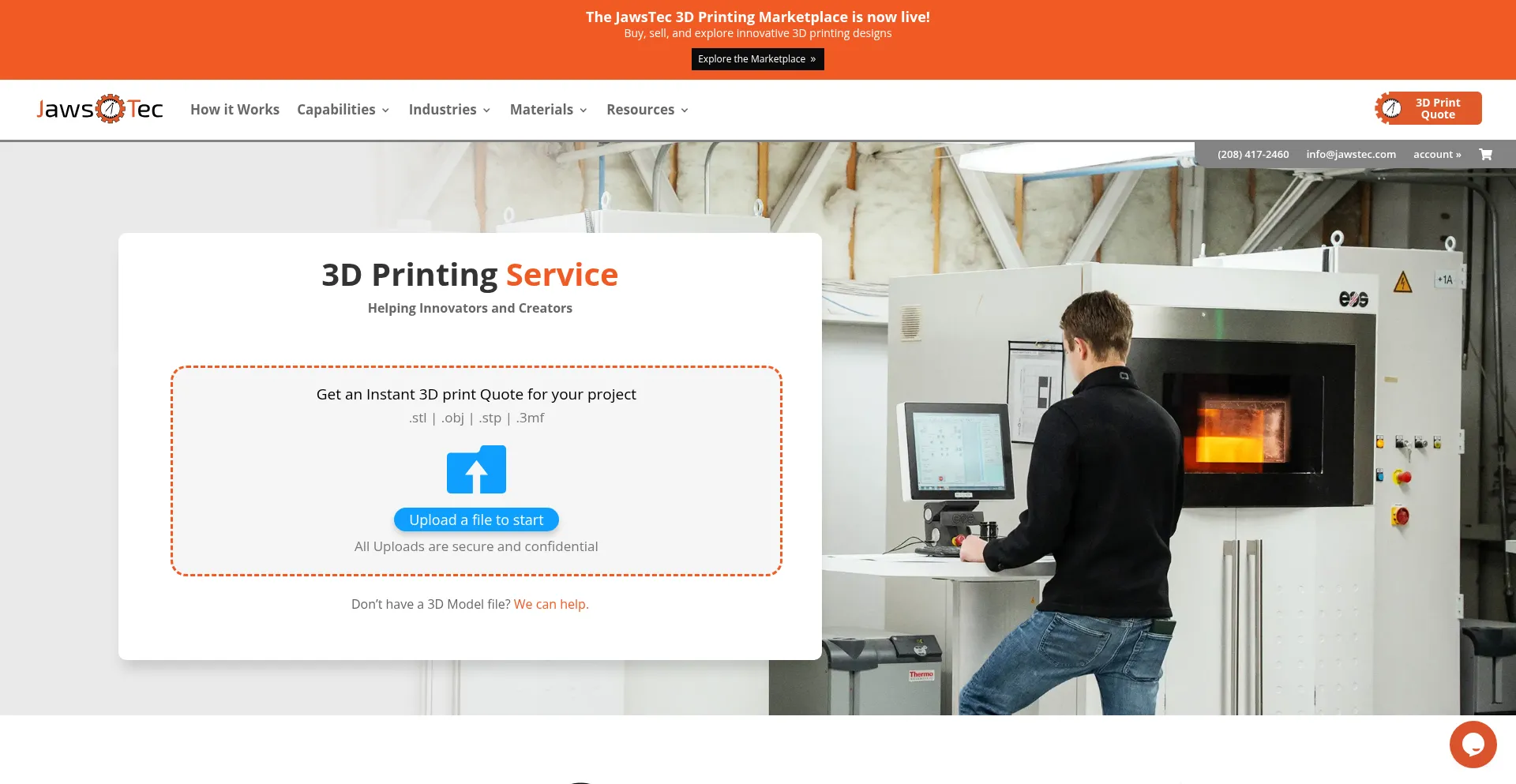 Jawstec is a 3D printing service provider with fast online quoting, expert staff, and guarantee our work exceeds expectations.