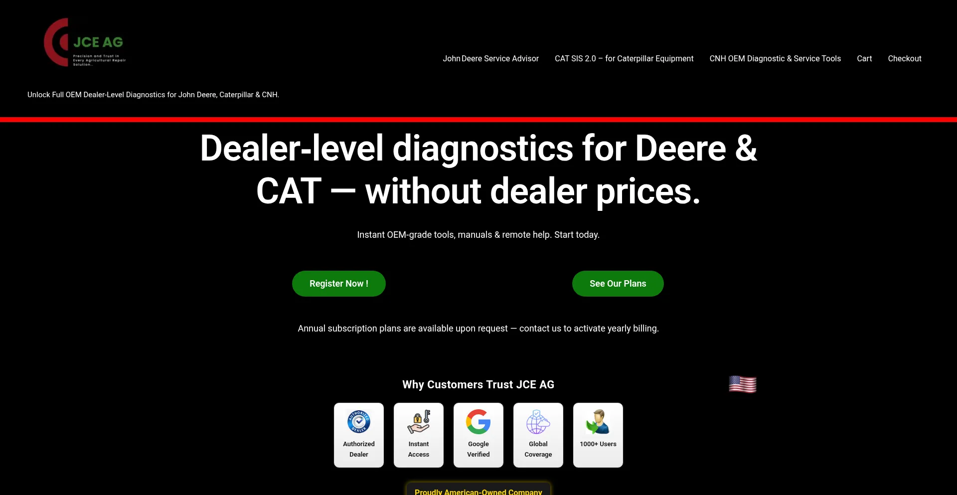 JCE AG – Unlock Full OEM Dealer-Level Diagnostics for John Deere, Caterpillar & CNH.