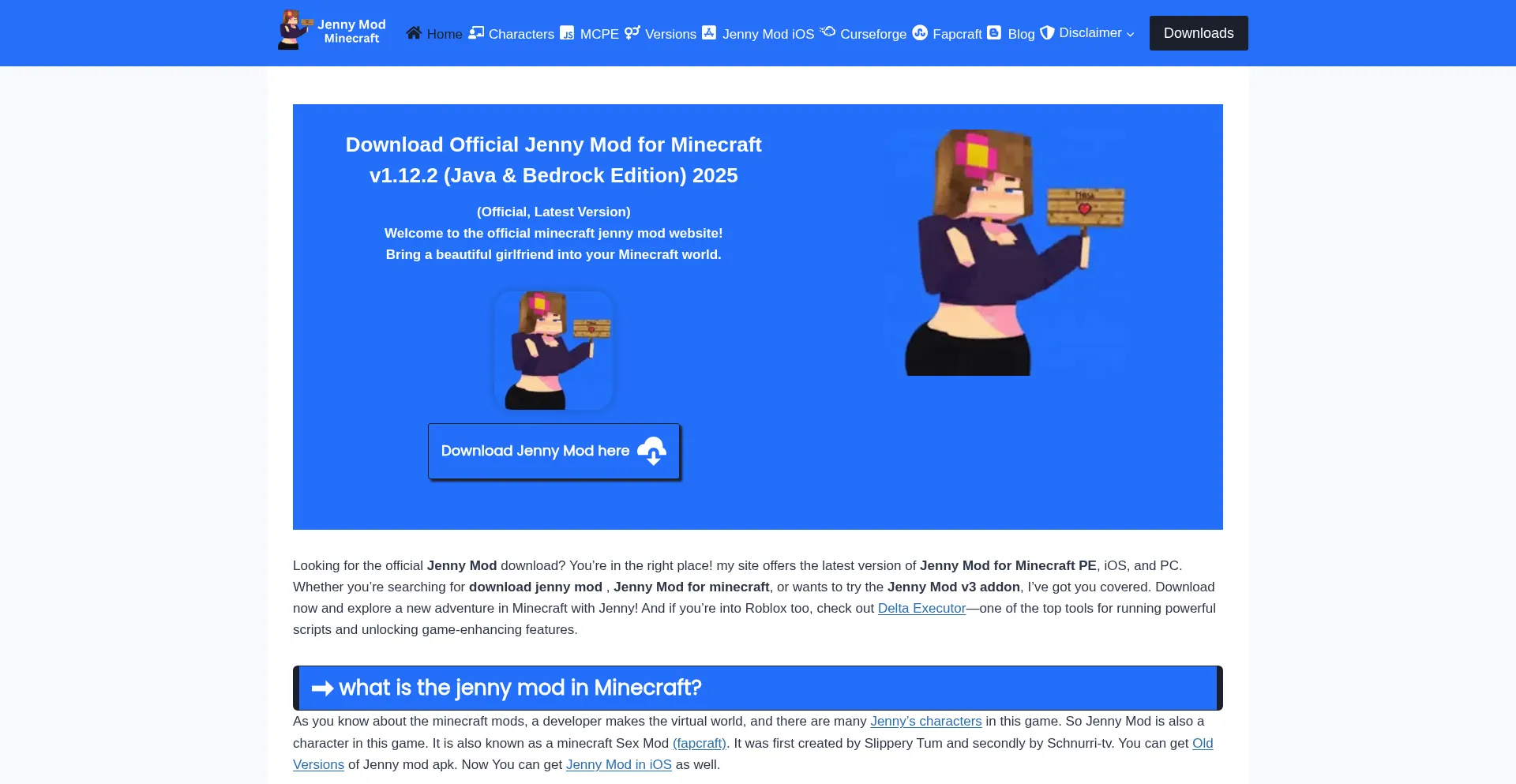 Download Jenny Mod for Minecraft Java & Bedrock 2025. Get safe links, install guides, custom skins, animations, characters and roleplay features.