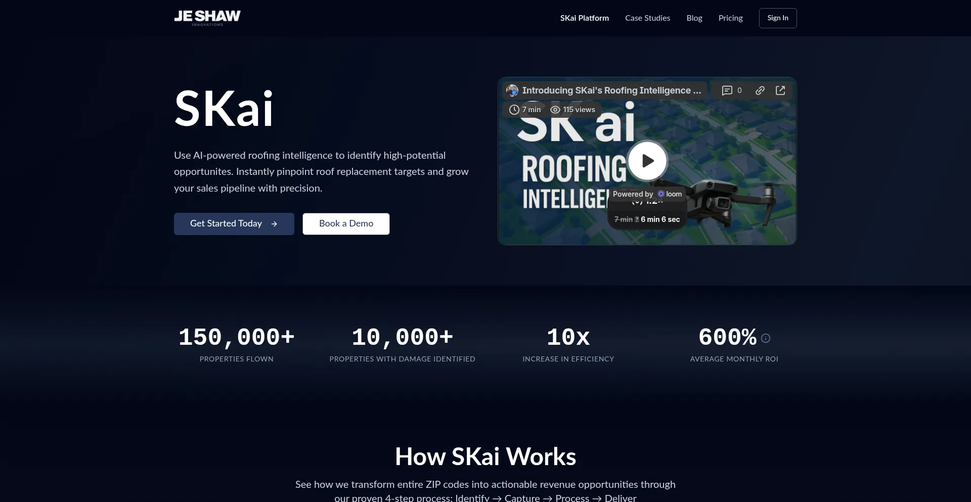 High-resolution imagery. AI-powered property analysis. Data-driven targeting. Transform your roofing business with SKai's comprehensive analytics platform.