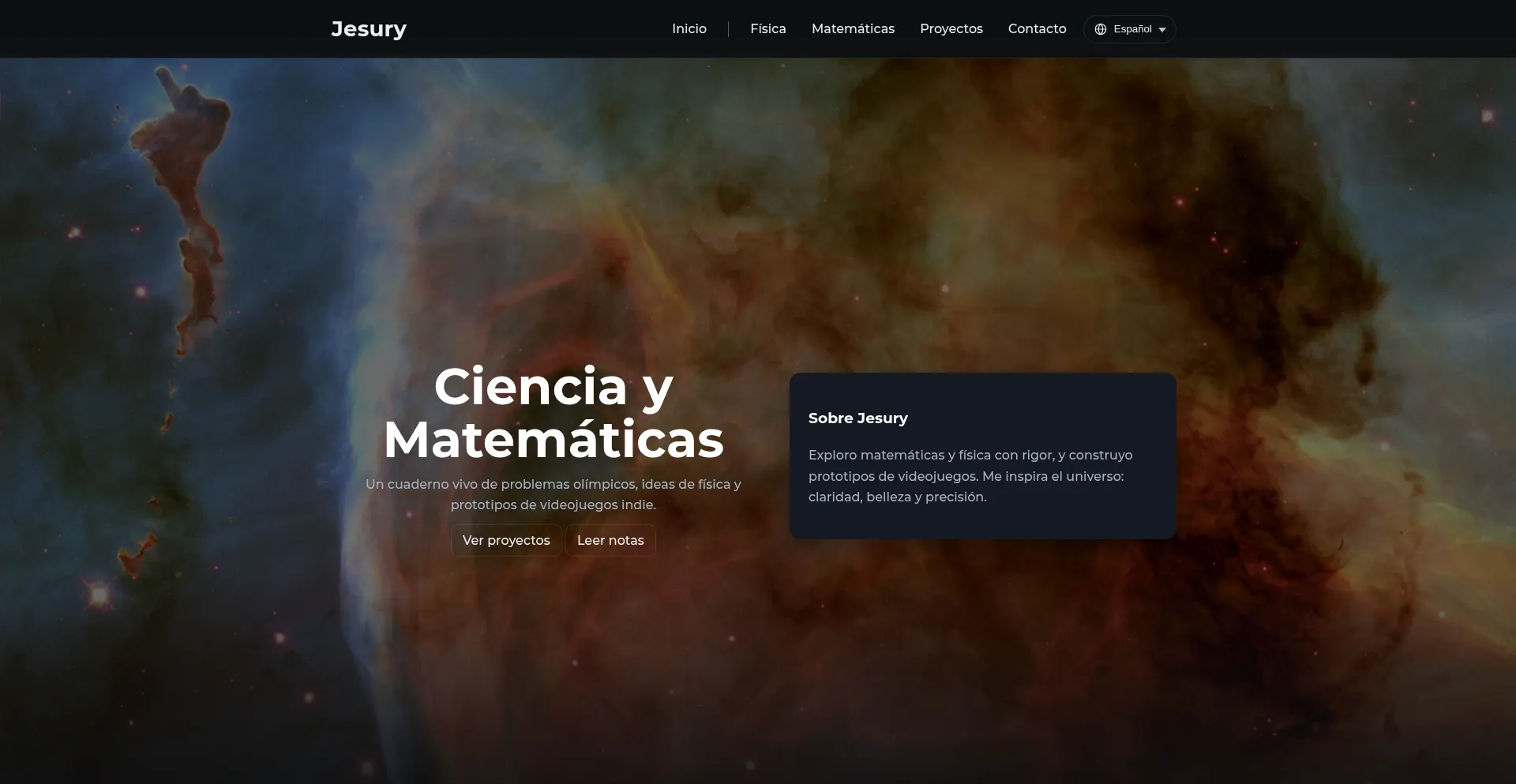 Jesury — ciencia, matemáticas, física y videojuegos indie. Notas claras, proyectos minimalistas y ambición olímpica.