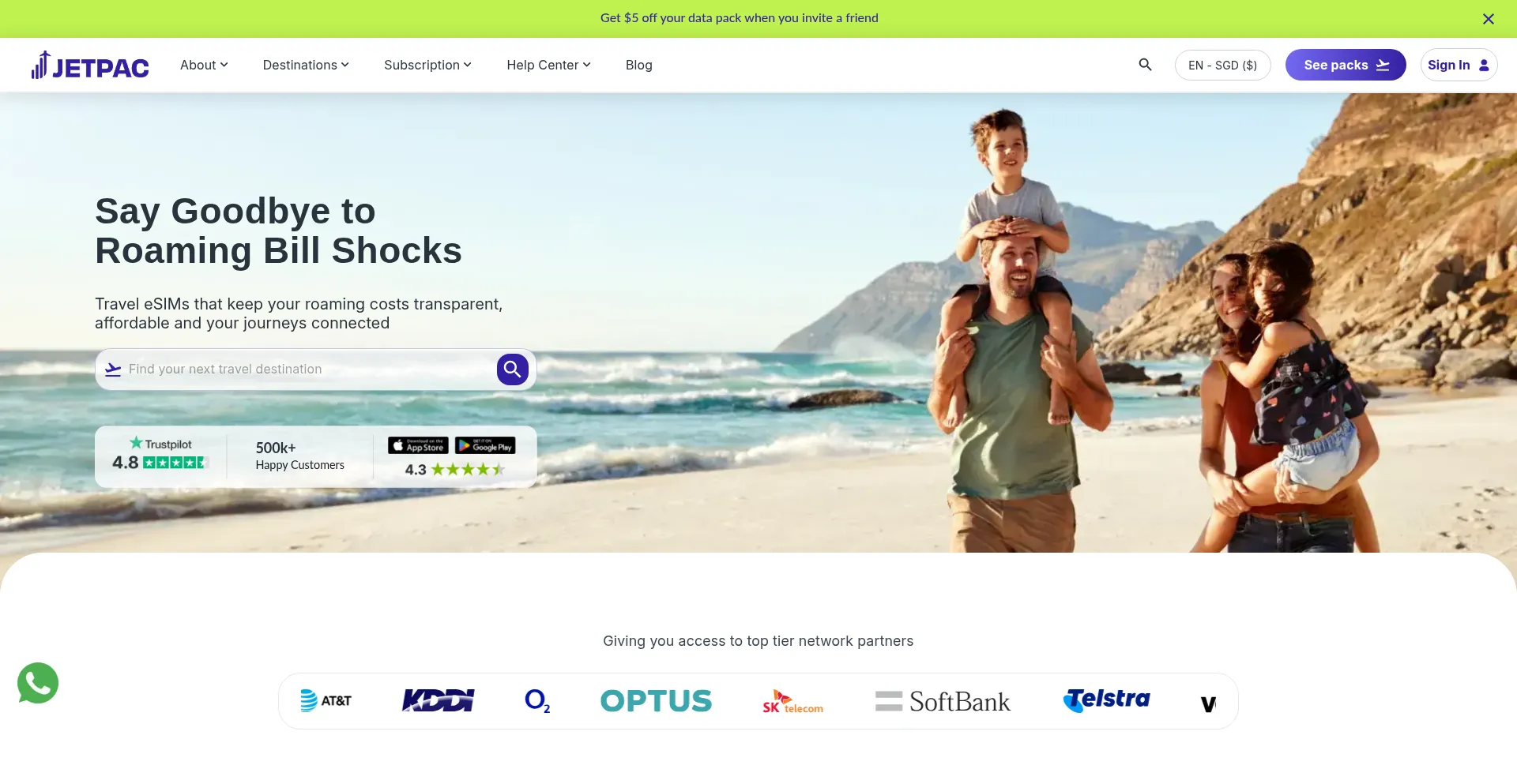 Buy Jetpac eSIM for international travel and save up to 70%. No bill shocks, just seamless 5G data and 24/7 support across 200+ destinations worldwide.