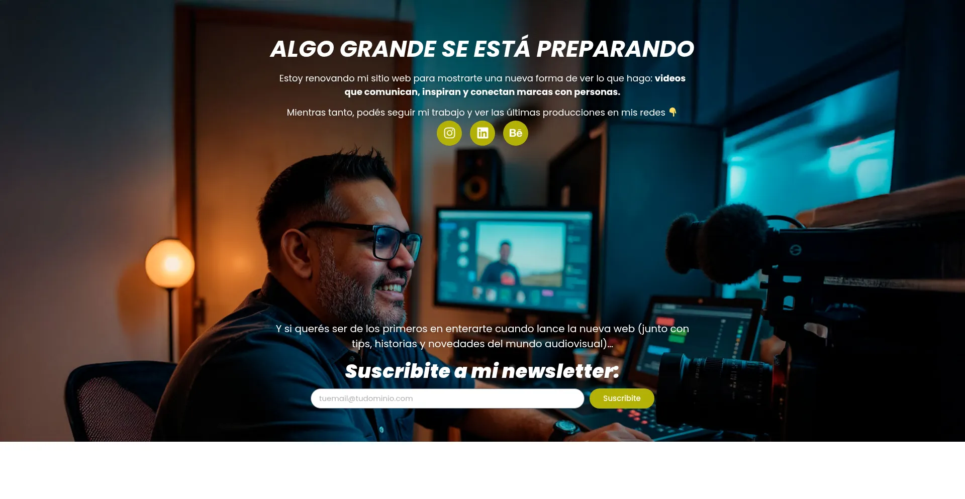 Estoy renovando mi sitio web para mostrarte una nueva forma de ver lo que hago: videos que comunican, inspiran y conectan marcas con personas.