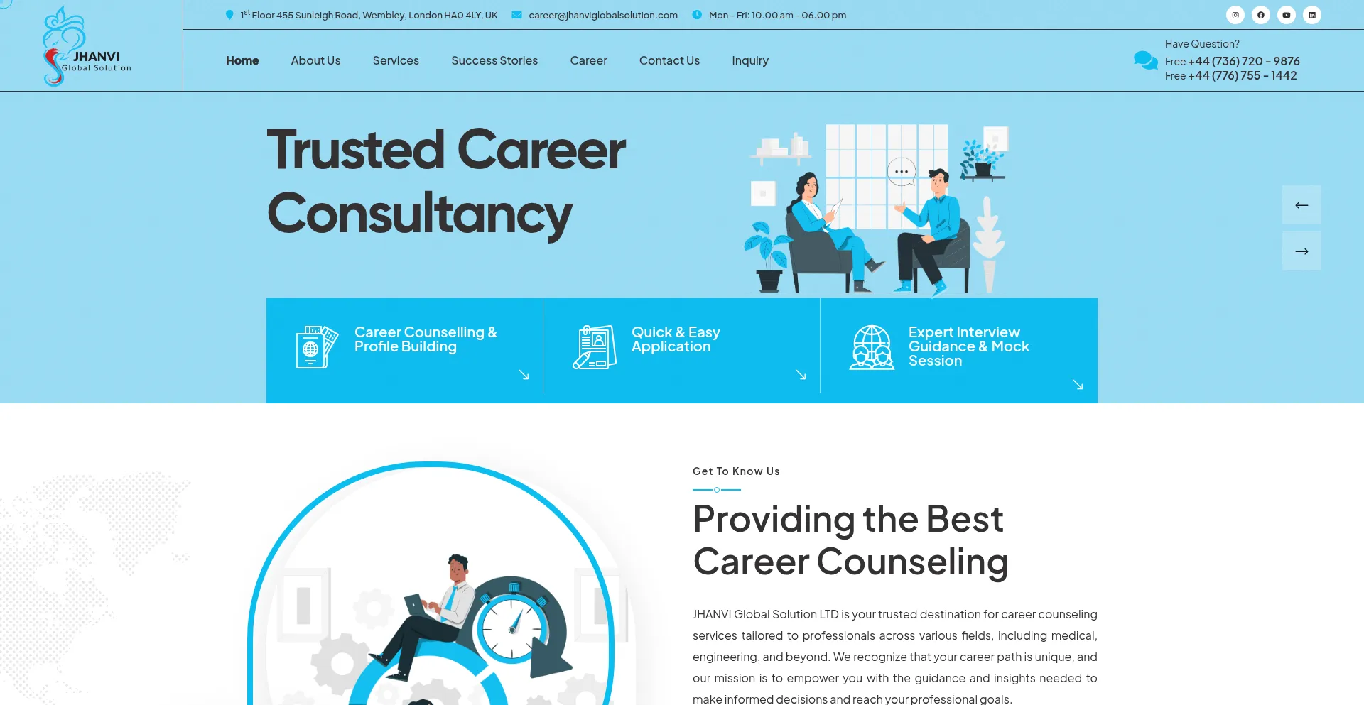 JHANVI Global Solution LTD Your Trusted Partner for Career Counseling Services. Tailored guidance for professionals in medical, engineering, and more. Empower your unique career...