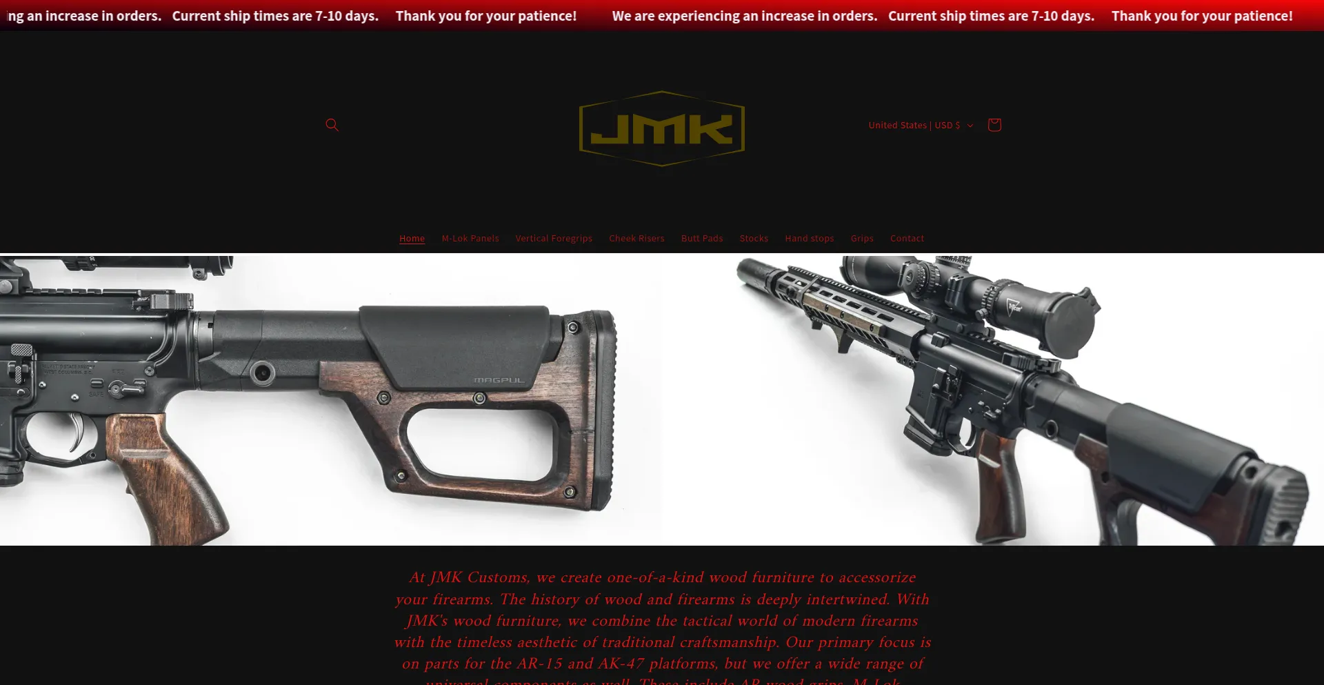 JMK Customs is your one stop source for CNC machined solid wood furniture for your firearm. We manufacture AR-15 grips and accessories including MLOK rail covers, AK-47 grips, h...