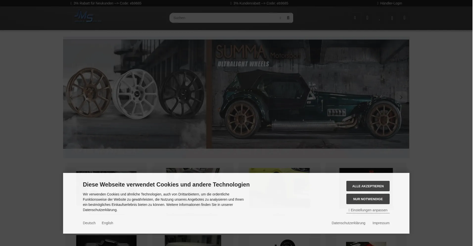 JMS, Spoiler, Alufelgen, Chiptuning, Ladekanteschutz. Tuningexperte seit 1992. Hersteller wie KW, Barracuda, OZ, Corspeed, Abt und viele mehr.