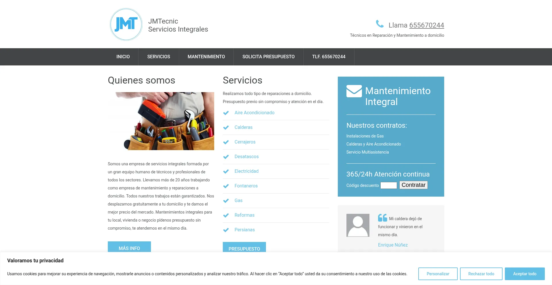 The website implements cookie consent mechanisms in compliance with privacy regulations such as GDPR or CCPA. This demonstrates that jmtecnic.com adheres to data protection standards and provides users with control over personal data collection practices.
