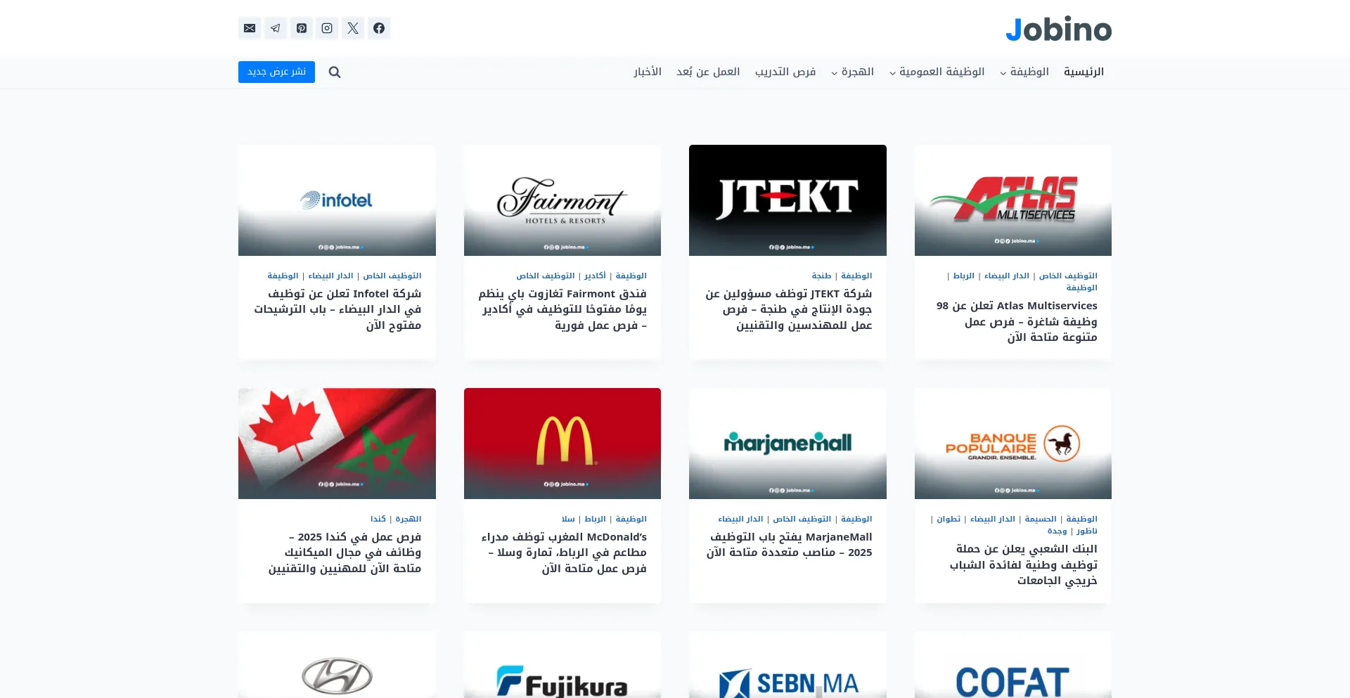 The jobino.ma website employs search engine optimization (SEO) techniques to improve its visibility and ranking in search engine results pages (SERPs).