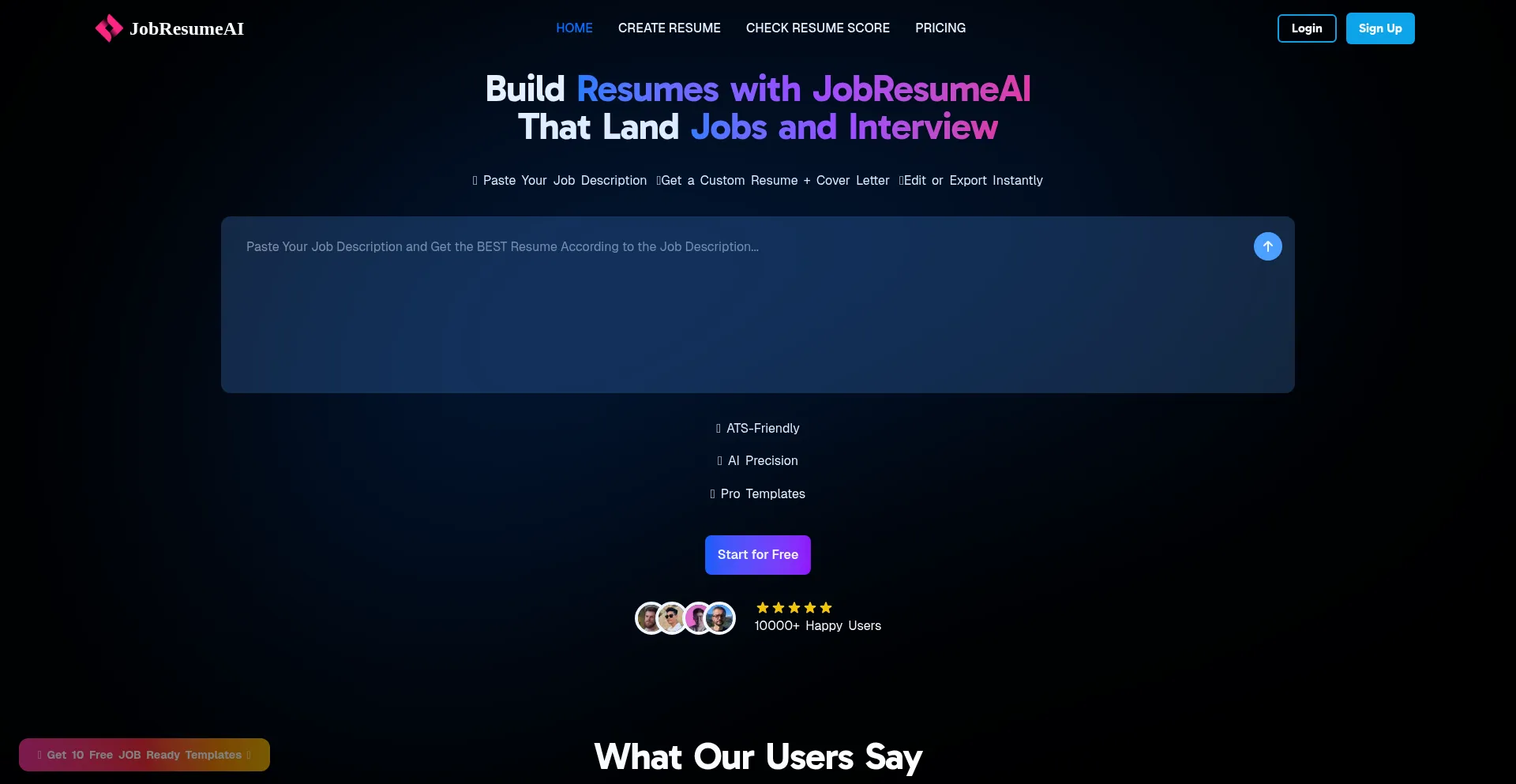 Build professional, ATS-compliant resumes in seconds with Premium templates, keyword optimization, and one-click export to PDF.