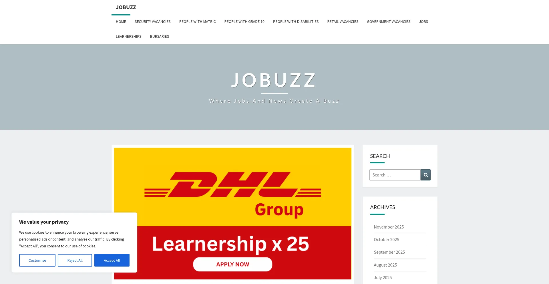 The website implements cookie consent mechanisms in compliance with privacy regulations such as GDPR or CCPA. This demonstrates that jobuzz.co.za adheres to data protection standards and provides users with control over personal data collection practices.