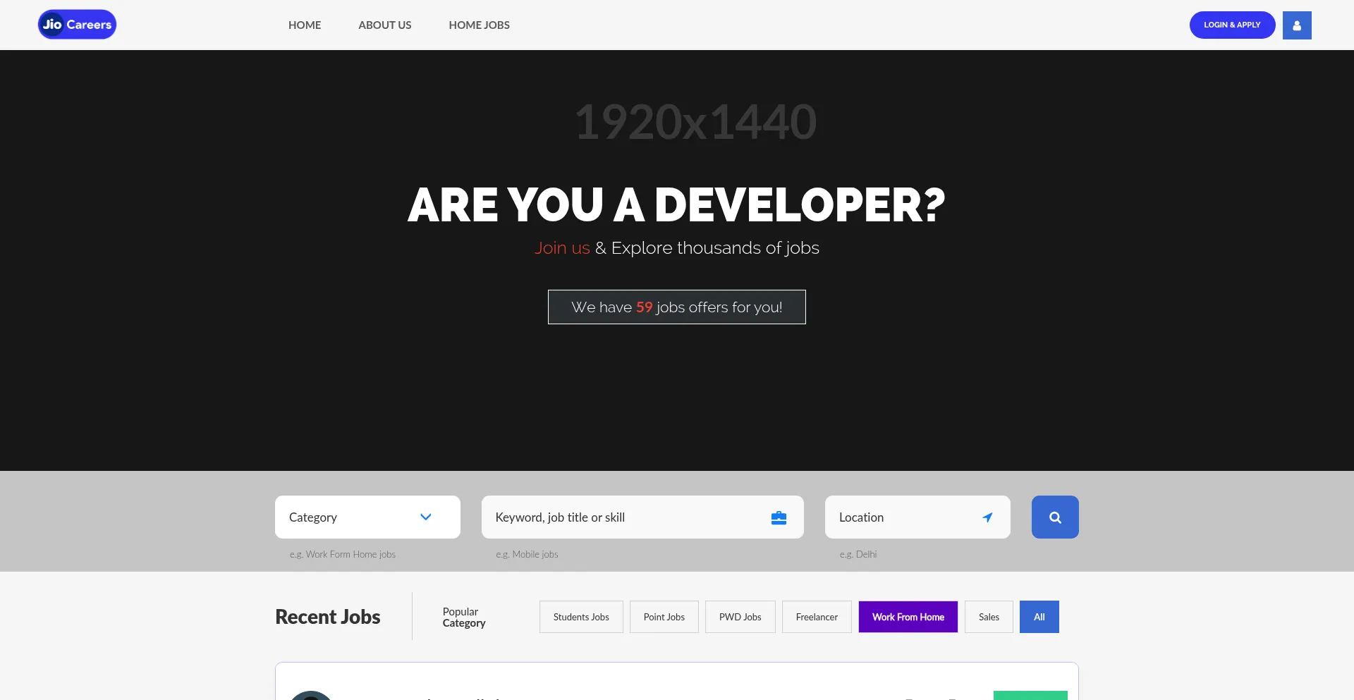 Jobs, Registration Form, Home Jobs, Bootstrap Framework, Respond.js Framework, Animate.css Framework, Young Domain