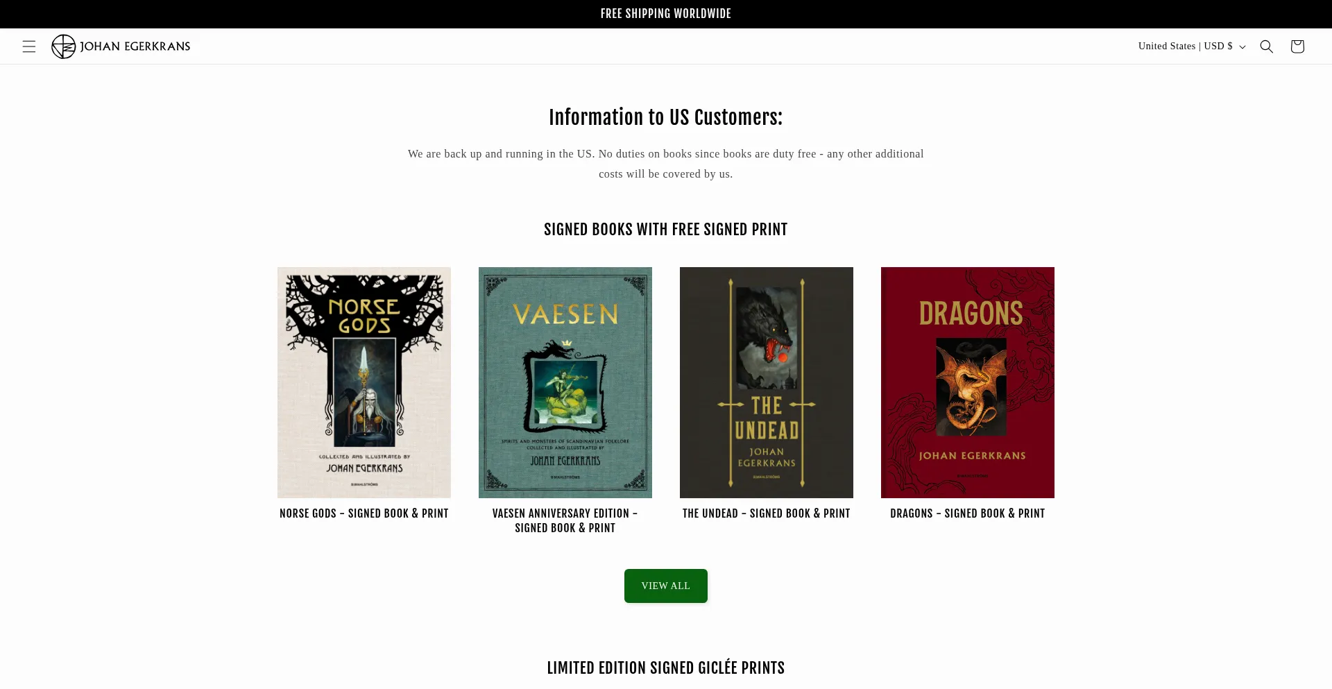 Johan Egerkrans is an illustrator and writer from Sweden. In this shop he sells signed prints of his artwork and signed books. He has previously published the books Vaesen, Nors...