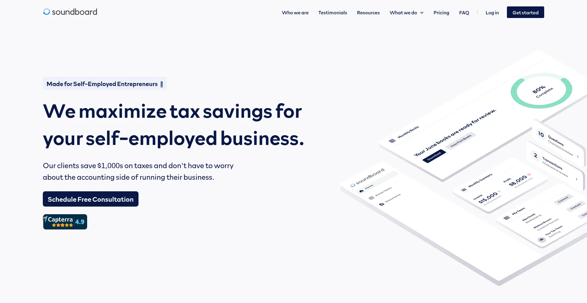 Self-employed taxes and accounting are overwhelming. Soundboard takes care of your tax work, you focus on growing your business.