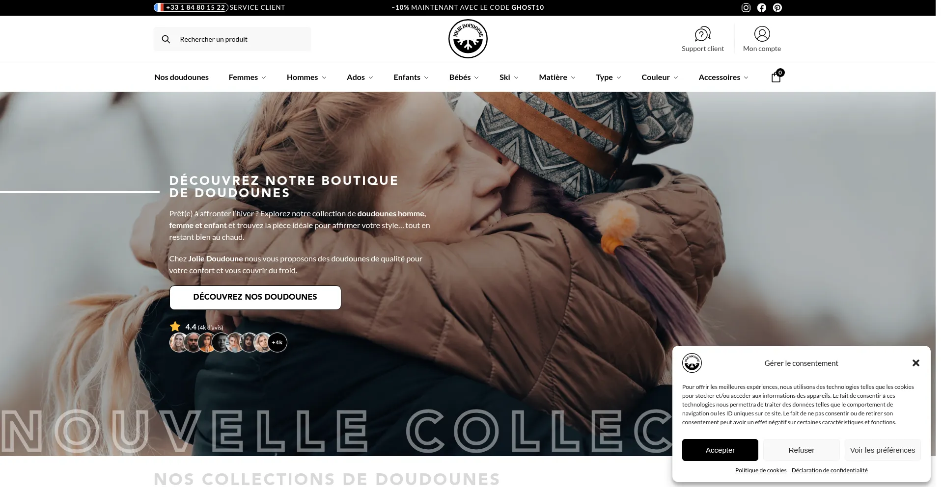 The joliedoudoune.com website uses Google Tag Manager to add and update tracking tags on its website.