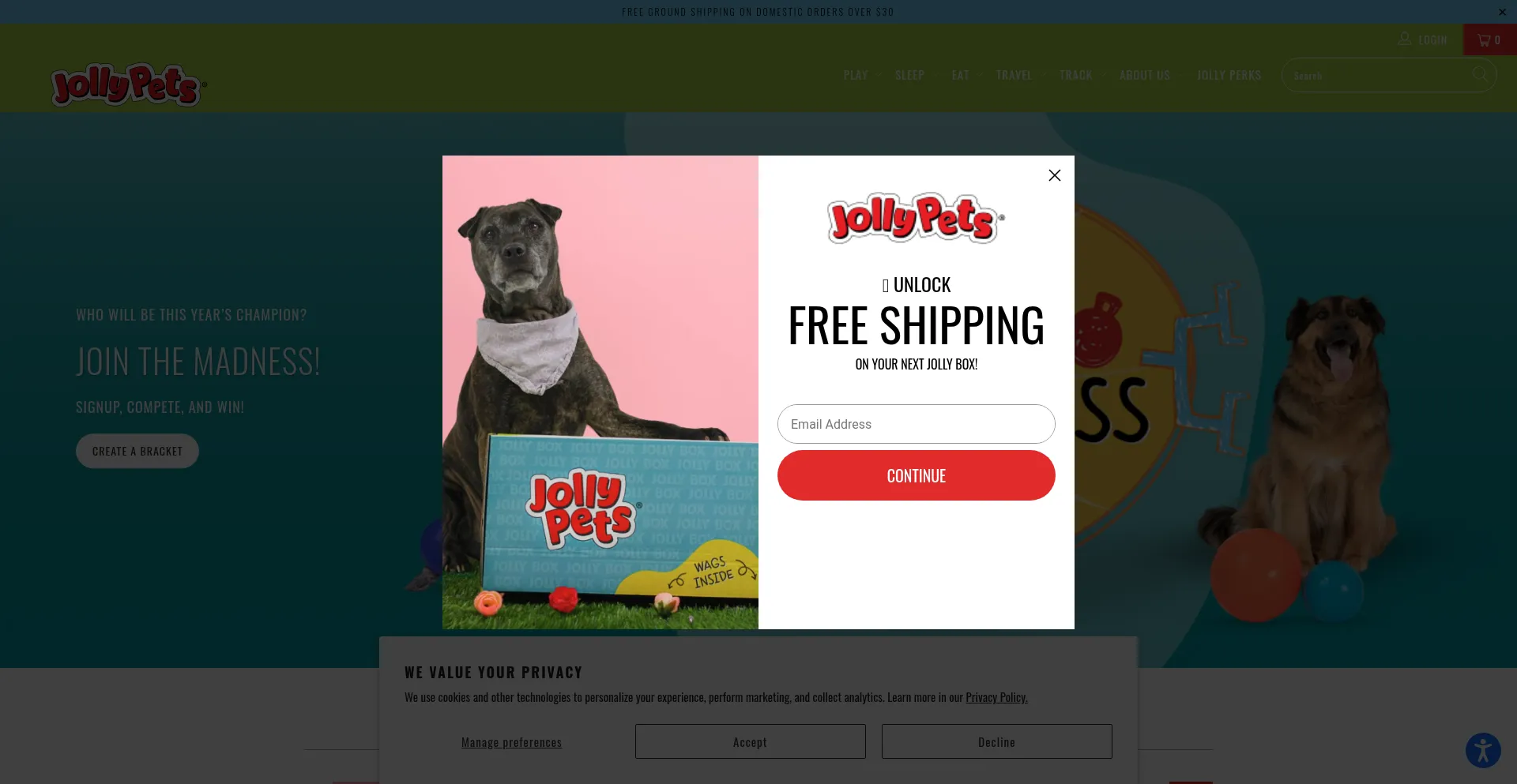 The website implements cookie consent mechanisms in compliance with privacy regulations such as GDPR or CCPA. This demonstrates that jollypets.com adheres to data protection standards and provides users with control over personal data collection practices.