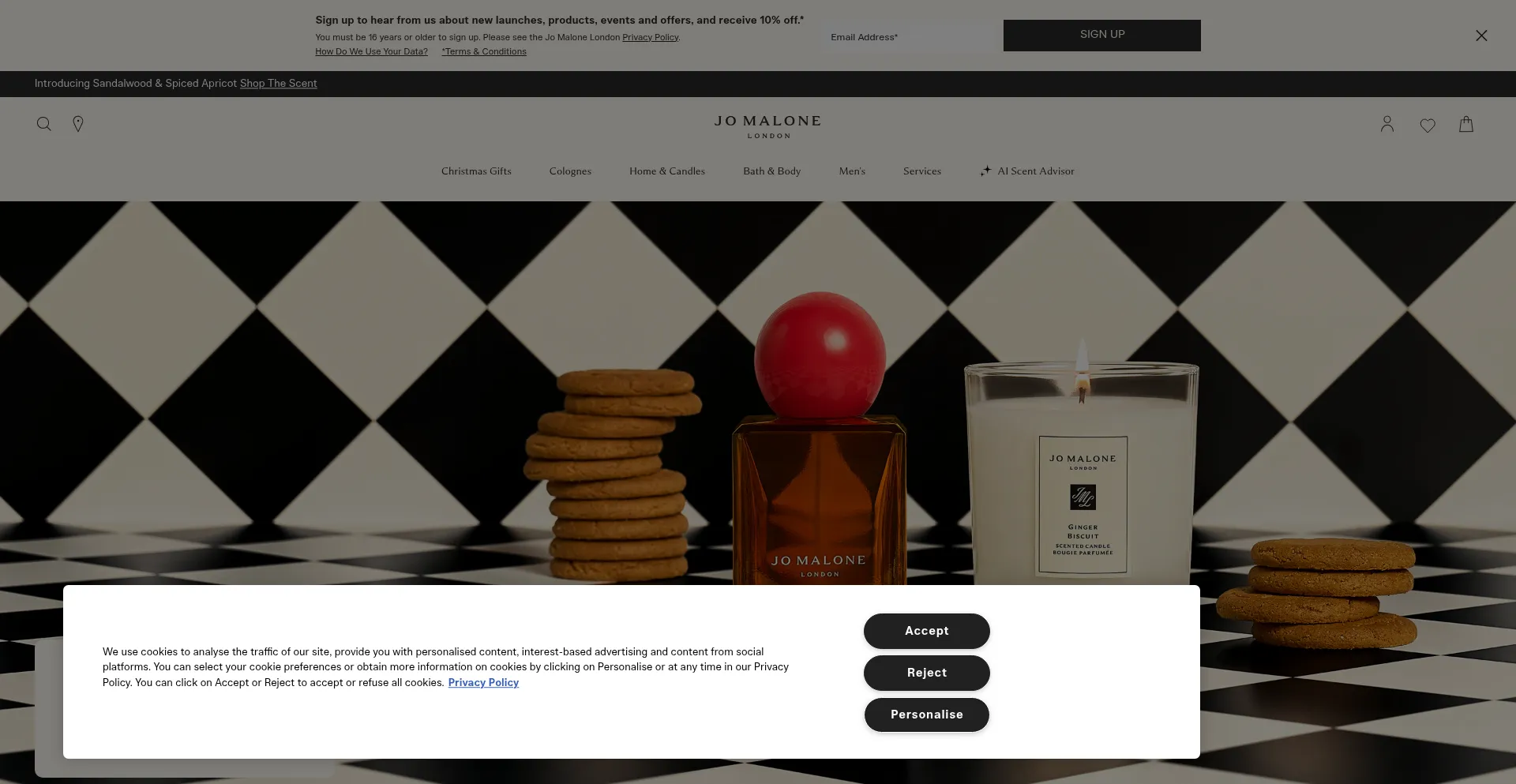 The website implements cookie consent mechanisms in compliance with privacy regulations such as GDPR or CCPA. This demonstrates that jomalone.co.uk adheres to data protection standards and provides users with control over personal data collection practices.
