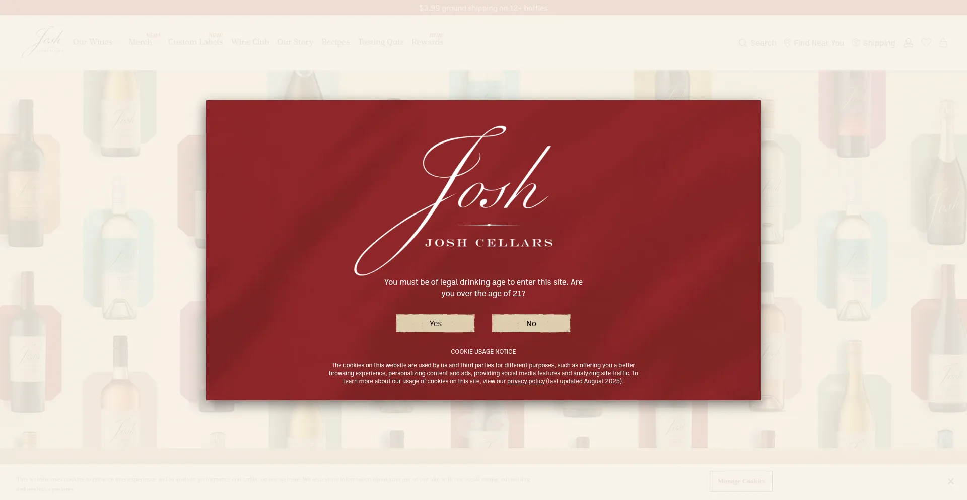 The website implements cookie consent mechanisms in compliance with privacy regulations such as GDPR or CCPA. This demonstrates that joshcellars.com adheres to data protection standards and provides users with control over personal data collection practices.
