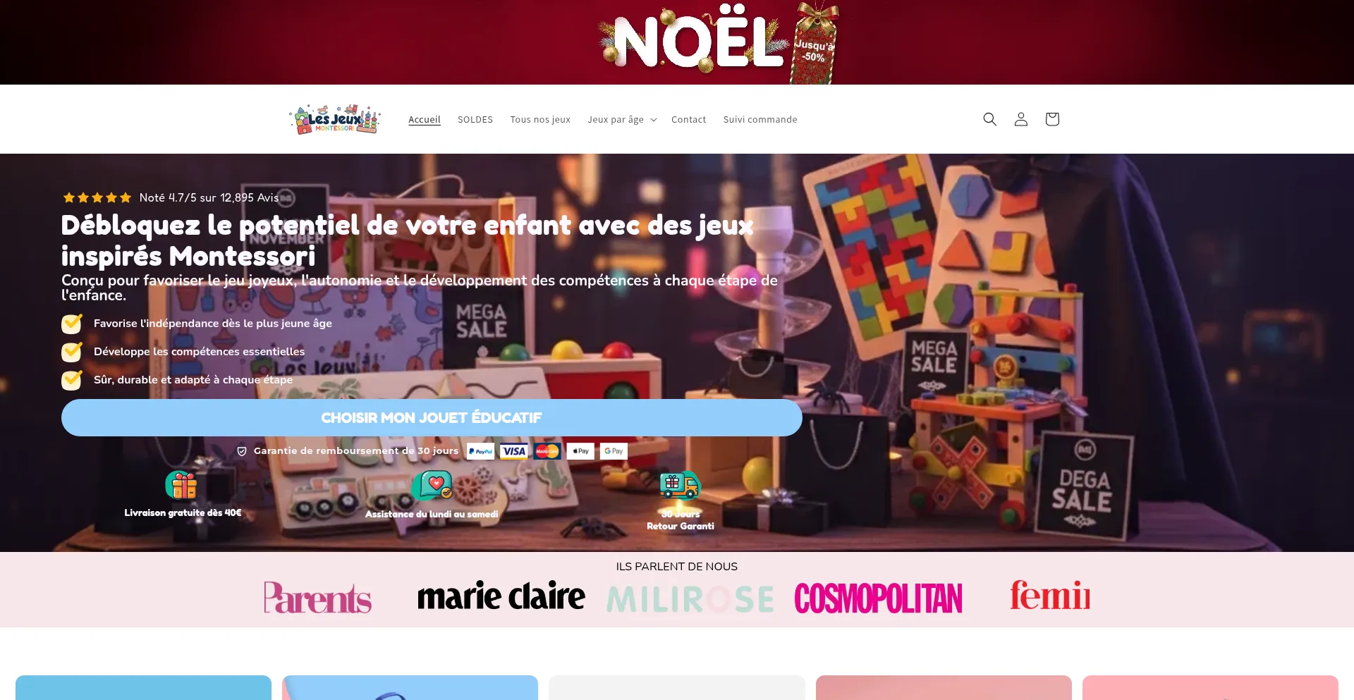 Analysis indicates that jouets-jeux-montessori.com operates as an e-commerce platform facilitating online transactions for goods or services. The website implements shopping cart functionality, payment processing systems, and product catalog features typical of commercial retail operations.