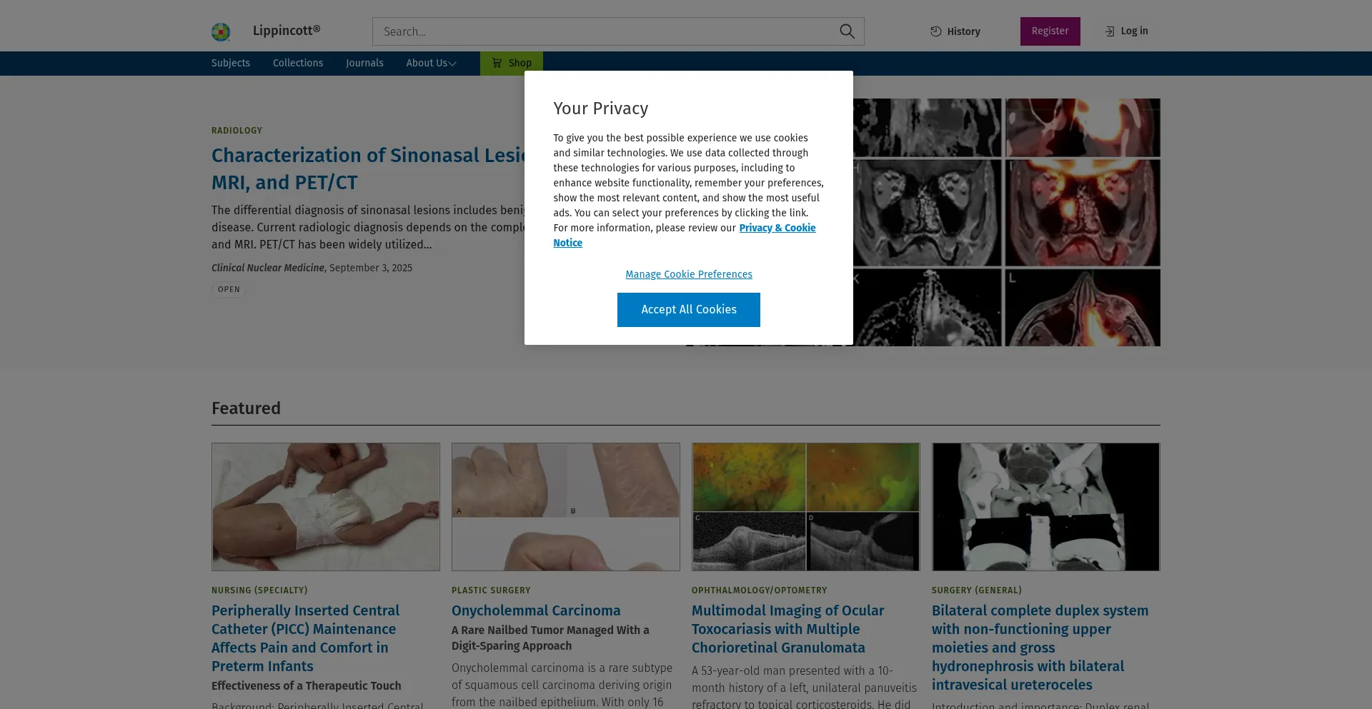 The website implements cookie consent mechanisms in compliance with privacy regulations such as GDPR or CCPA. This demonstrates that journals.lww.com adheres to data protection standards and provides users with control over personal data collection practices.