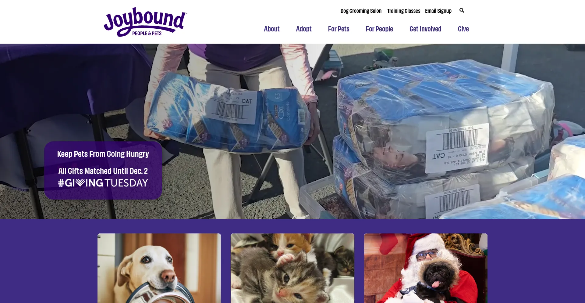 Located in Walnut Creek, California, Joybound helps shelter animals find forever homes and a second chance at love.