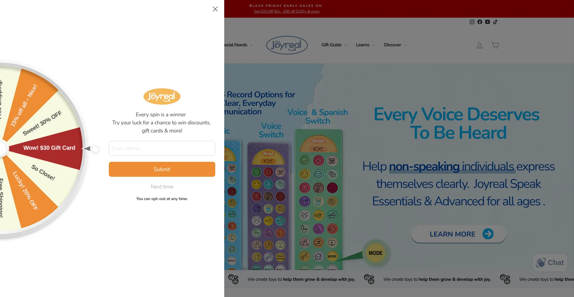 The joyrealtoys.com website uses Google Tag Manager to add and update tracking tags on its website.