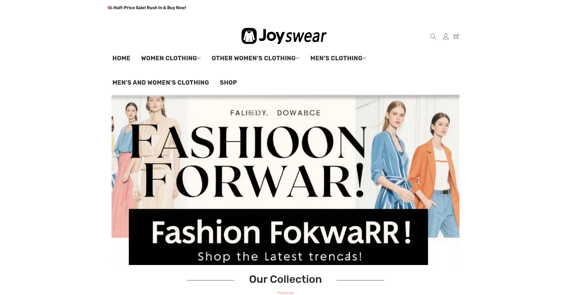 Joyswear.com exhibits characteristics consistent with scam-like e-commerce operations. The site appears to accept payments while customer reports suggest data collection issues.