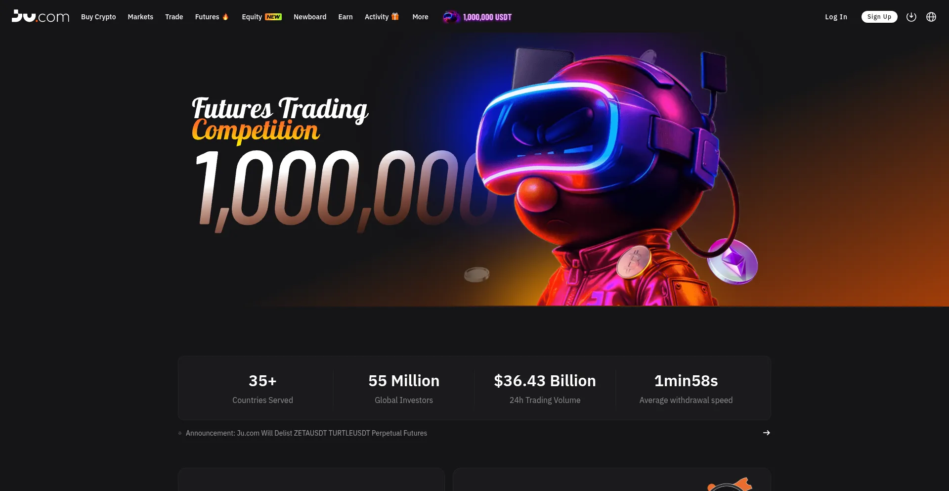 Ju.com is a leading crypto exchange to safely buy, sell, and trade Bitcoin, Ethereum, and other popular cryptocurrencies with low fees.