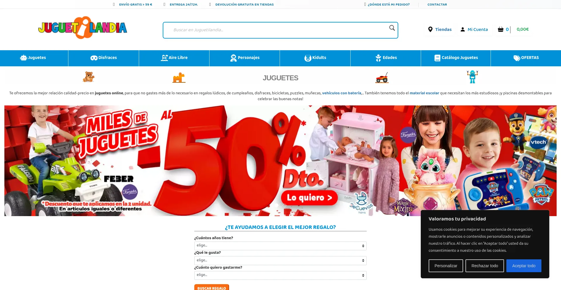 The website implements cookie consent mechanisms in compliance with privacy regulations such as GDPR or CCPA. This demonstrates that juguetilandia.com adheres to data protection standards and provides users with control over personal data collection practices.