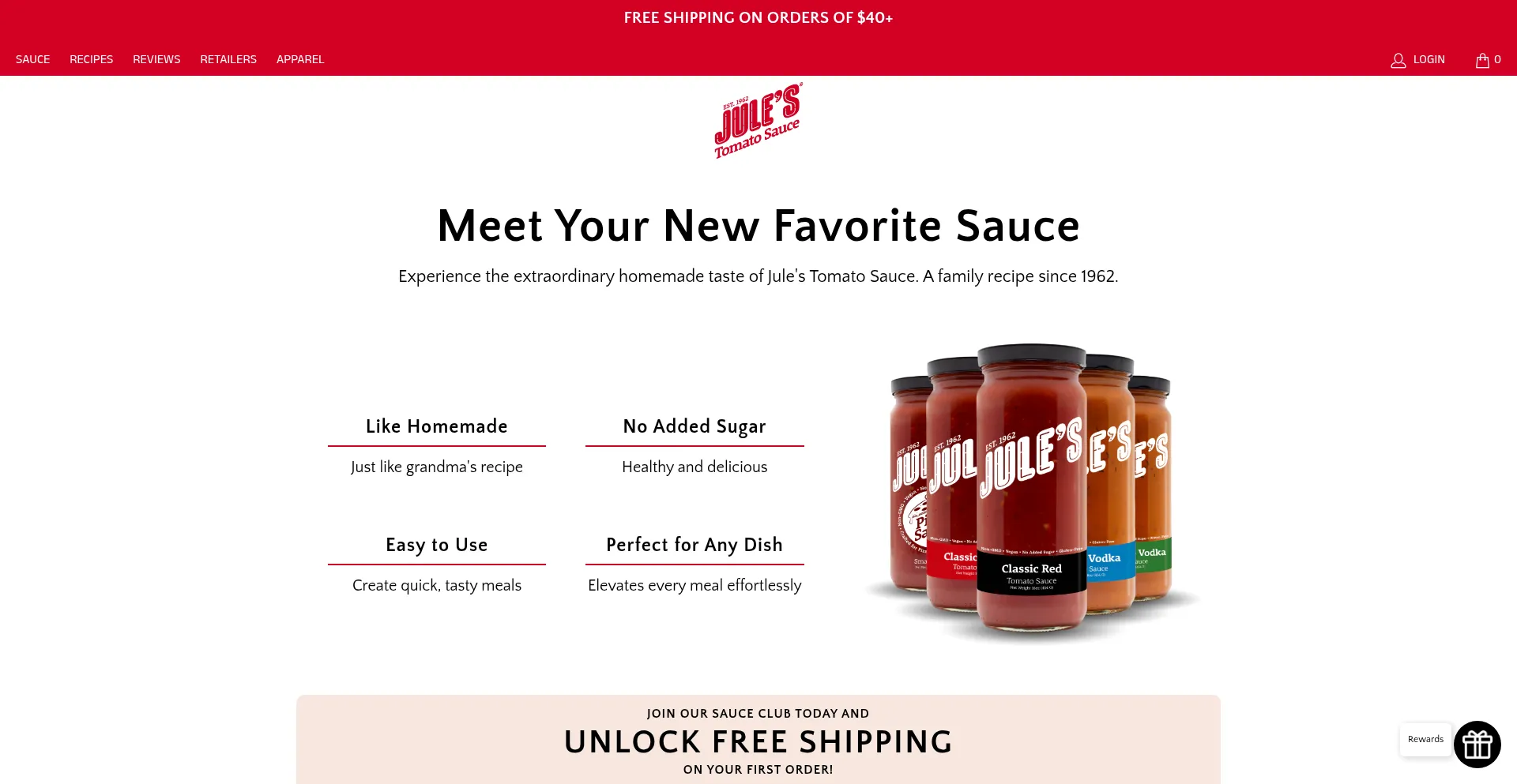 Our analyzer determines that website julestomatosauce.com is using Shopify CMS. Shopify is a popular e-commerce platform, powering around 4.4% of websites globally.