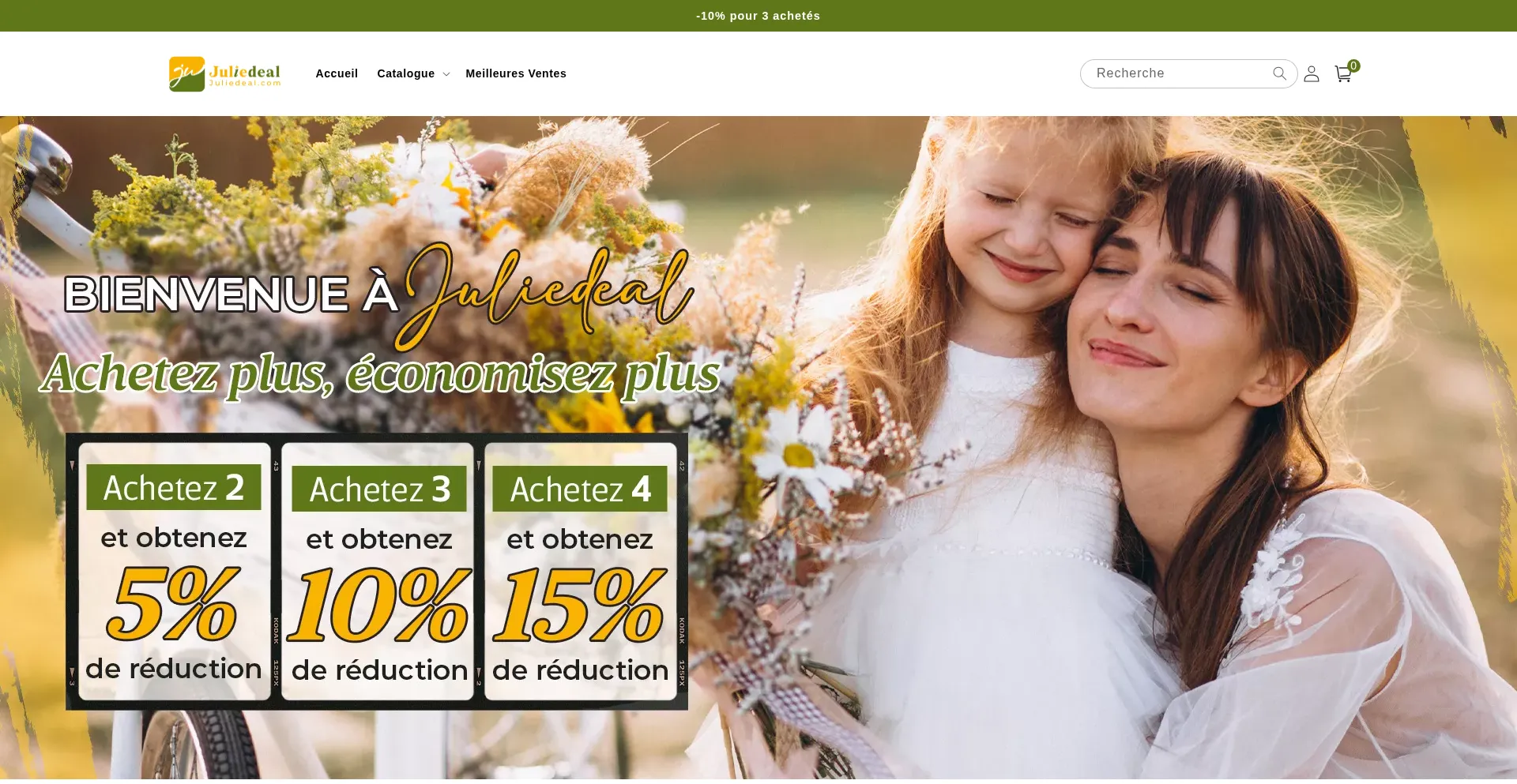 The juliedeal.com website utilizes free e-commerce platform solutions, which may indicate cost-conscious operations but could also suggest limitations in security features, customer support, or advanced functionality compared to enterprise-grade solutions.