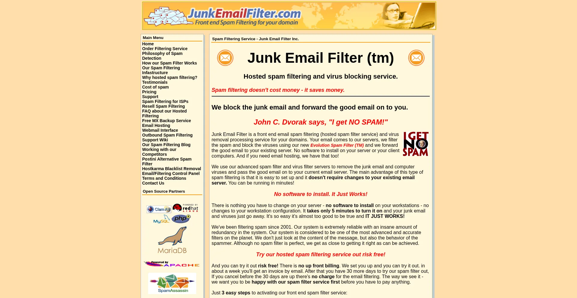 Junk Email Filter - Front End Spam / Virus Filtering for your Existing Email Server. We filter the spam and viruses and pass the good email on to you., Junk Email Filter is a fr...