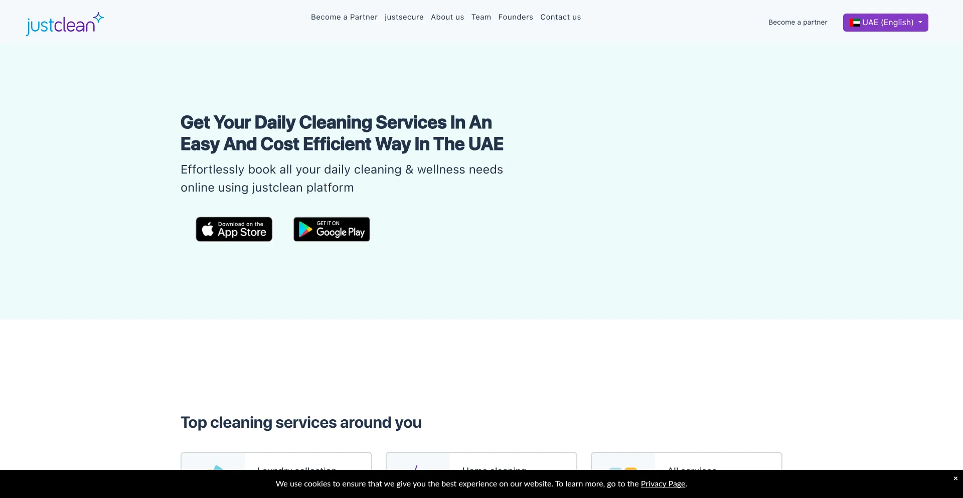 The website implements cookie consent mechanisms in compliance with privacy regulations such as GDPR or CCPA. This demonstrates that justclean.com adheres to data protection standards and provides users with control over personal data collection practices.