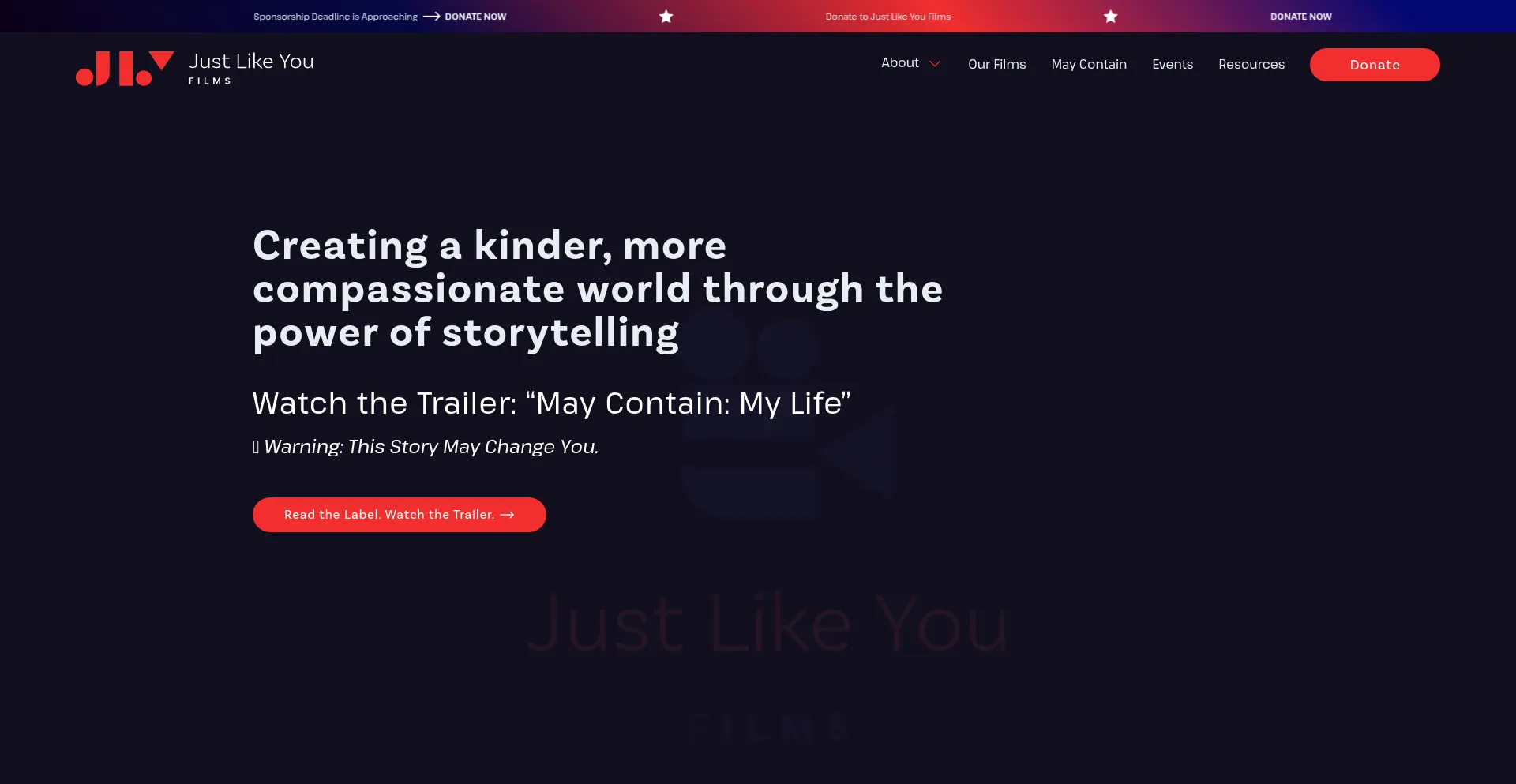 The justlikeyoufilms.org website uses Google Tag Manager to add and update tracking tags on its website.