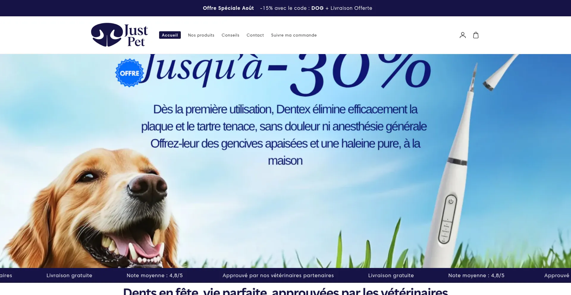 Analysis indicates that justpet.fr operates as an e-commerce platform facilitating online transactions for goods or services. The website implements shopping cart functionality, payment processing systems, and product catalog features typical of commercial retail operations.