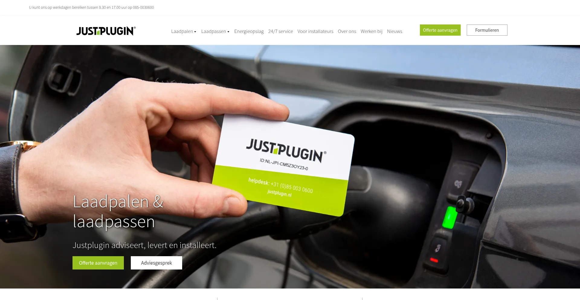 Laadpalen, laadpassen, energieopslag en DC-laders | Justplugin