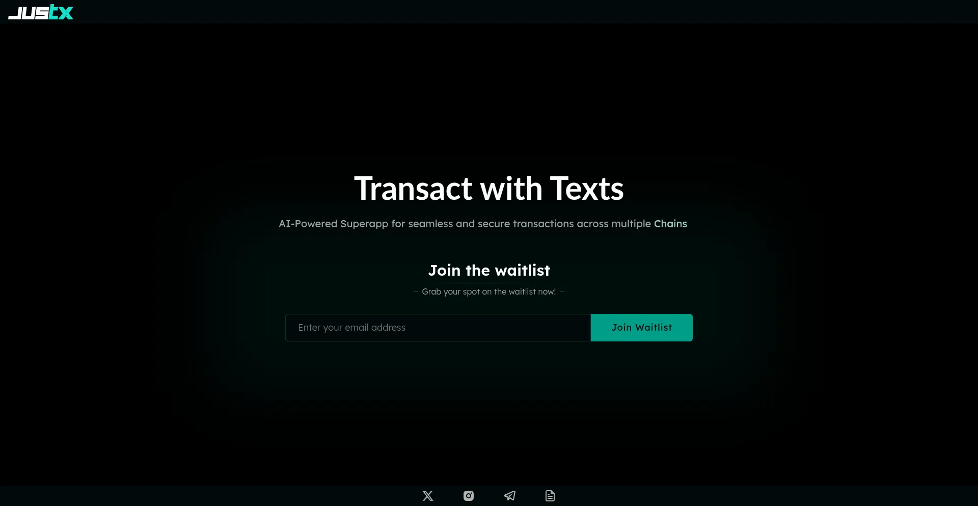 docs.justx.ai x.com justx.ai t.me waitlist.justx.ai cdn.tailwindcss.com cdnjs.cloudflare.com www.instagram.com fonts.googleapis.com fonts.gstatic.com