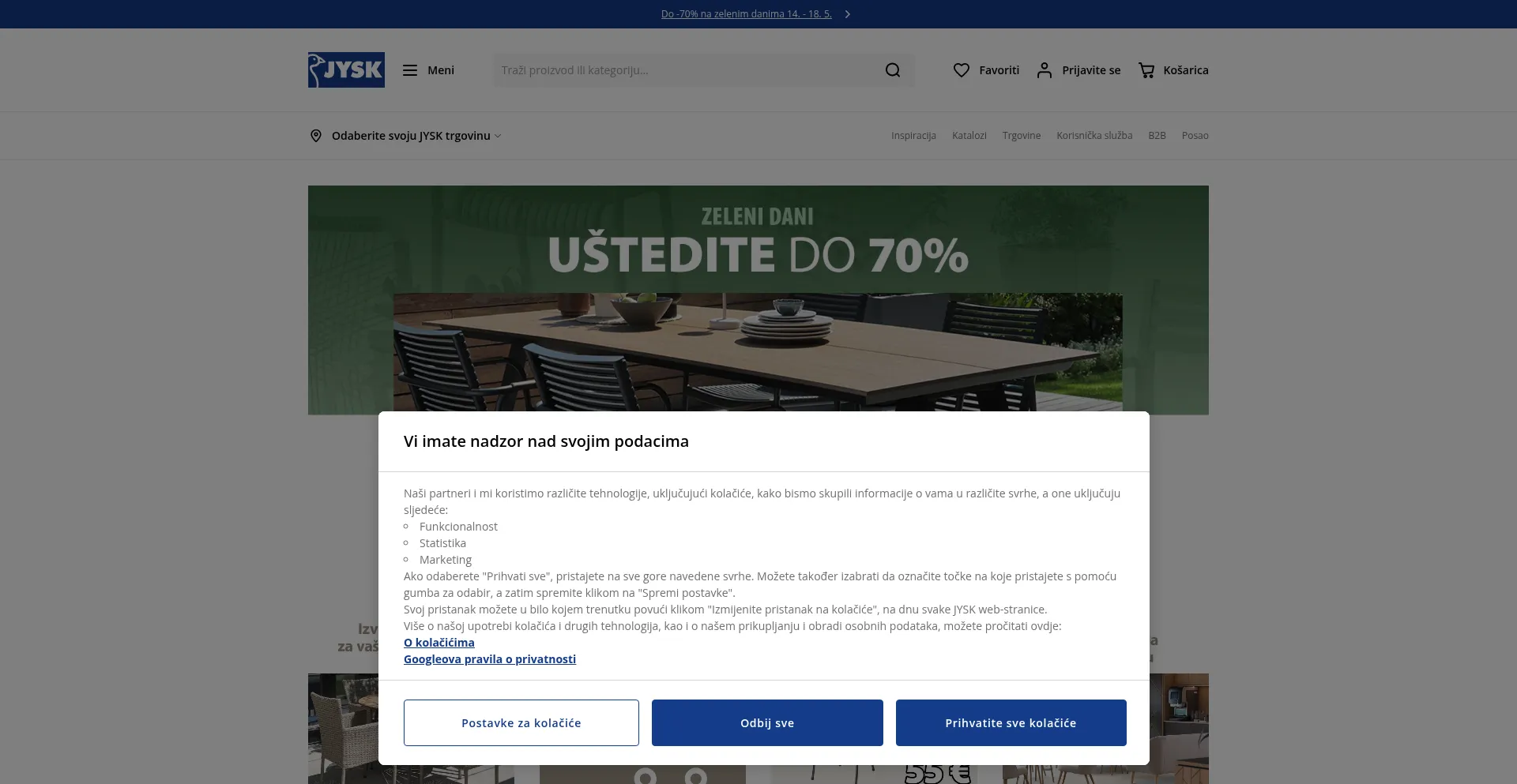 The website implements cookie consent mechanisms in compliance with privacy regulations such as GDPR or CCPA. This demonstrates that jysk.hr adheres to data protection standards and provides users with control over personal data collection practices.