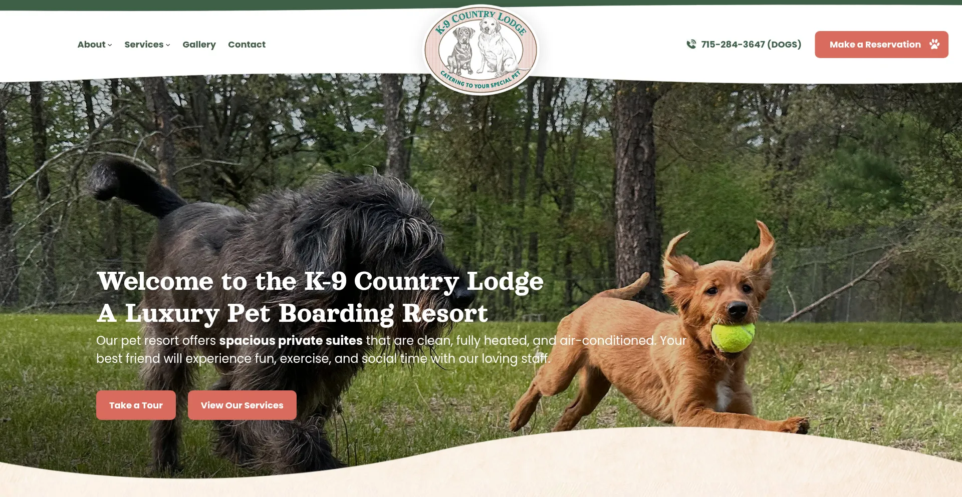 Welcome to the K-9 Country Lodge. A luxury pet boarding resort.