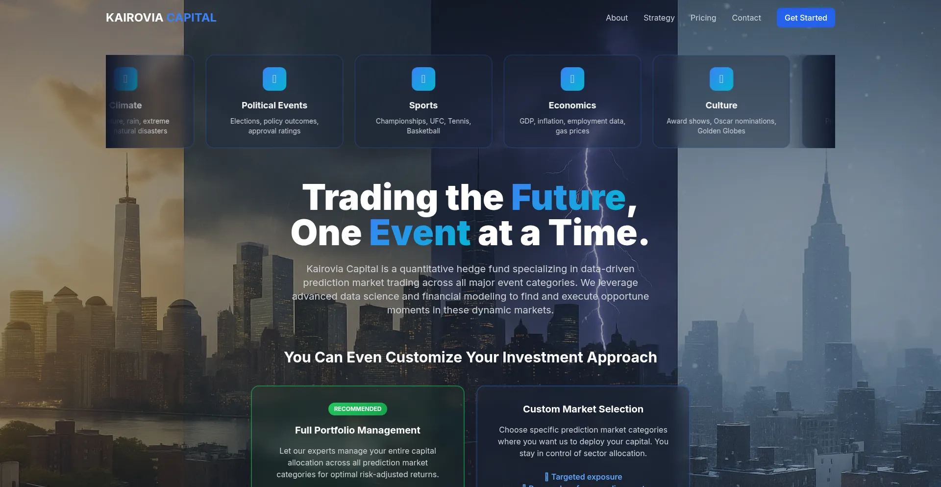 Kairovia Capital is a quantitative hedge fund specializing in data-driven trading of weather-related event contracts on Kalshi. Discover our unique strategy and fee structure.