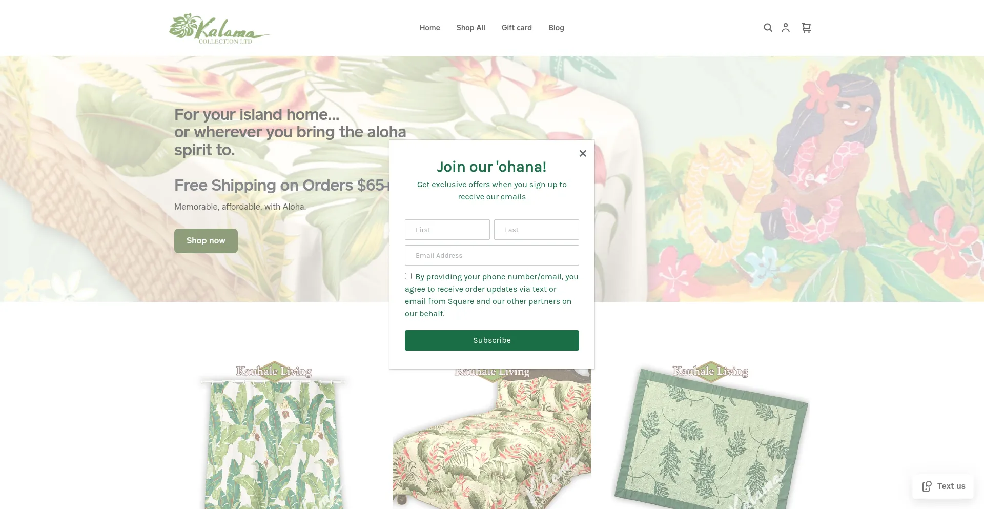 The kalamahawaiishop.com website implements data collection forms that may request personal information including names, email addresses, phone numbers, or other sensitive details. Users should verify the legitimacy of it and review privacy policies before submitting personal data.